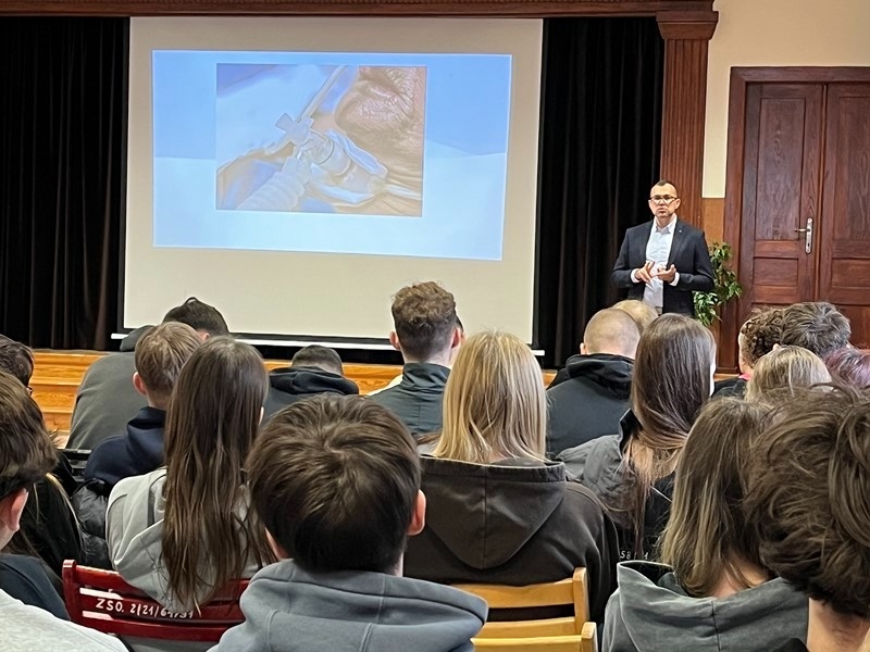 27 listopada w naszej szkole odbyło się niezwykłe spotkanie z lekarzem Panem Jakubem Jurkiewiczem, specjalistą radioterapii onkologicznej z NU-MED Centrum Diagnostyki i Terapii Onkologicznej w Zamościu. NU-MED jest to Centrum Diagnostyki i Terapii Onkologicznej, wielodyscyplinarna opieka onkologiczna, która szybko i skutecznie diagnozuje oraz wprowadza leczenie nowotworów.