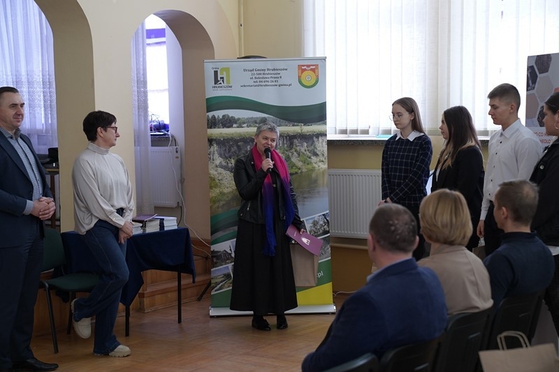 Bardzo miłym i ważnym dla nas akcentem była prezentacja publikacji na temat turnieju debatanckiego dla młodzieży o dziedzictwie archeologicznym wygranego przez uczniów naszej szkoły w czasie realizacji projektu w październiku 2023 r.