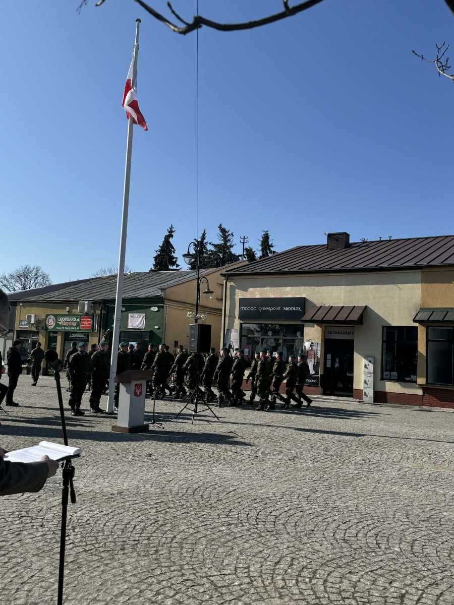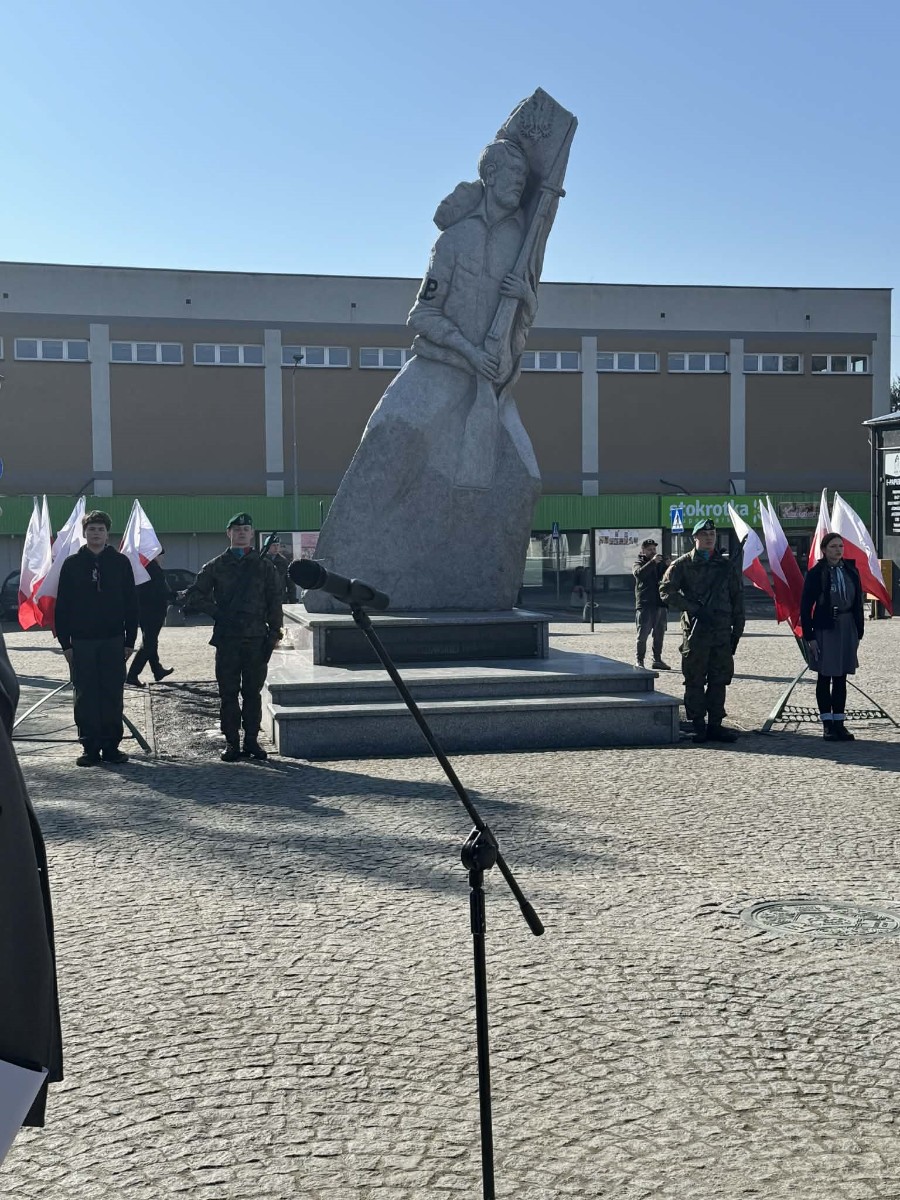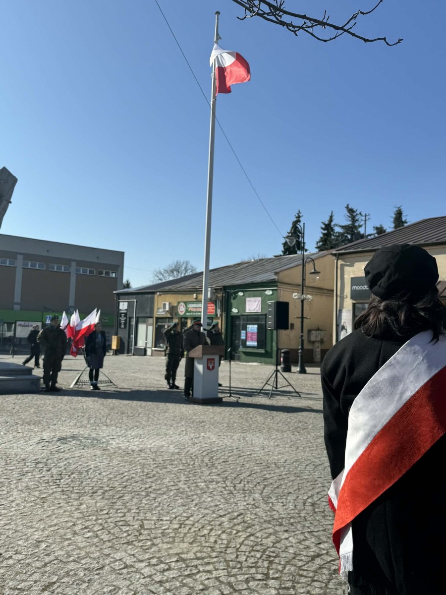 W hrubieszowskich obchodach I LO im. ks. Stanisława Staszica reprezentował poczet sztandarowy w składzie: Karolina Jasińska (III B), Oliwia Mączka (III A), Piotr Koroński (III A), pod opieką p. Joanny Pudłowskiej. Szkoła o ponad 100-letniej historii dba o przekazywanie uczniom wartości patriotycznych nie tylko w kontekście ogólnonarodowym, ale także tym lokalnym, dotyczącym miejsc, w których młodzież wzrasta i dojrzewa na co dzień. Członkini pocztu, Karolina Jasińska jest prawnuczką jednej z ofiar totalitaryzmu, Józefa Jasińskiego. 26 lutego 2026 r. wraz z rodziną wzięła udział w uroczystości w Pałacu Prezydenckim, w czasie której członkowie rodzin ofiar totalitaryzmów odebrali z rąk Prezydenta RP Karola Nawrockiego dokumenty potwierdzające tożsamość ich bliskich. Zapewne w wielu rodzinach naszych uczniów kultywuje się pamięć o cichych bohaterach trudnej polskiej historii. Nasze babcie, prababcie, dziadkowie i pradziadkowie to niejednokrotnie ludzie ogromnej odwagi, o czym musimy stale pamiętać, również dzięki takim świętom jak dzisiejsze.