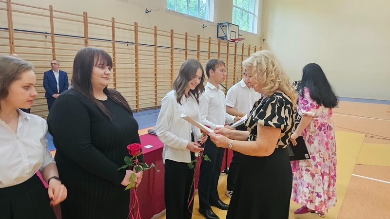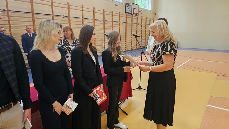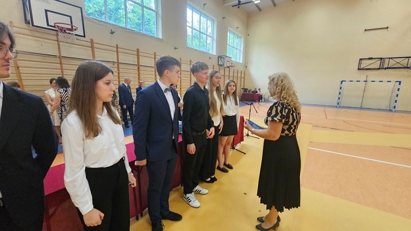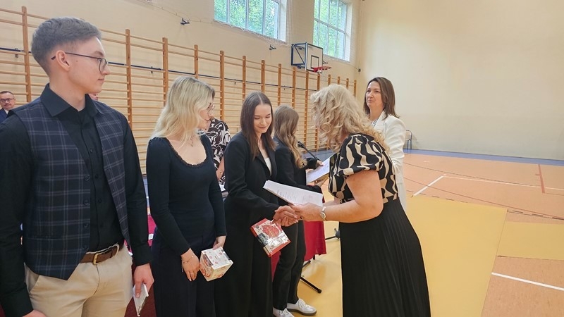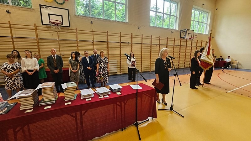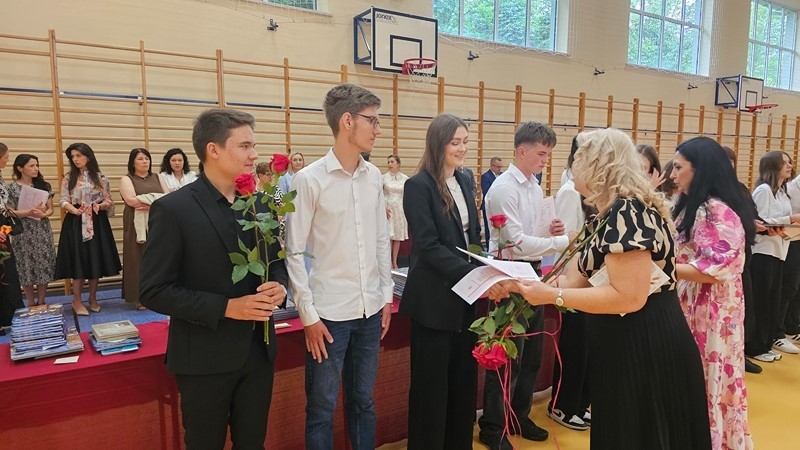 W piątek, 27 czerwca 2025 r., w I LO im. ks. Stanisława Staszica w Hrubieszowie odbyła się uroczystość zakończenia roku szkolnego 2024/2025. Wydarzenie rozpoczęło się od wprowadzenia sztandaru przez poczet szkolny i odśpiewania hymnu państwowego. Następnie wystąpiła Dyrektor szkoły, pani Alicja Borkowska, która podziękowała gronu pedagogicznemu, uczniom i rodzicom za ich całoroczny wysiłek, wytrwałość i zaangażowanie. Dyrektor pogratulowała wszystkim osiągnięć i życzyła bezpiecznych oraz satysfakcjonujących wakacji.