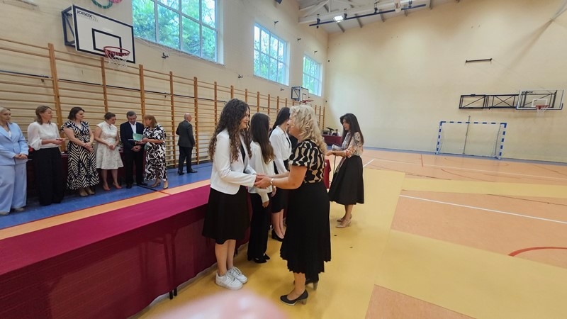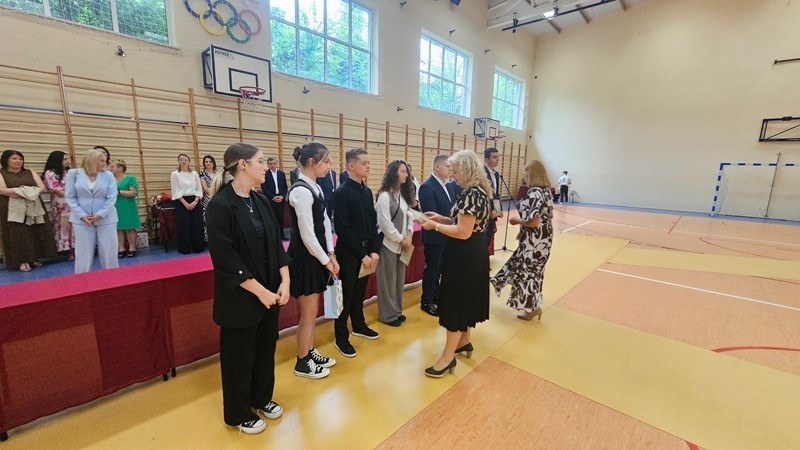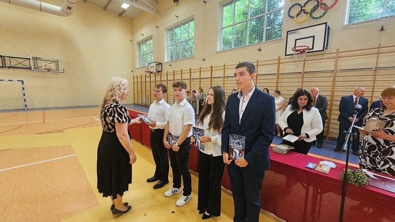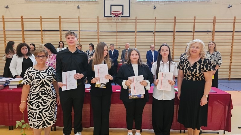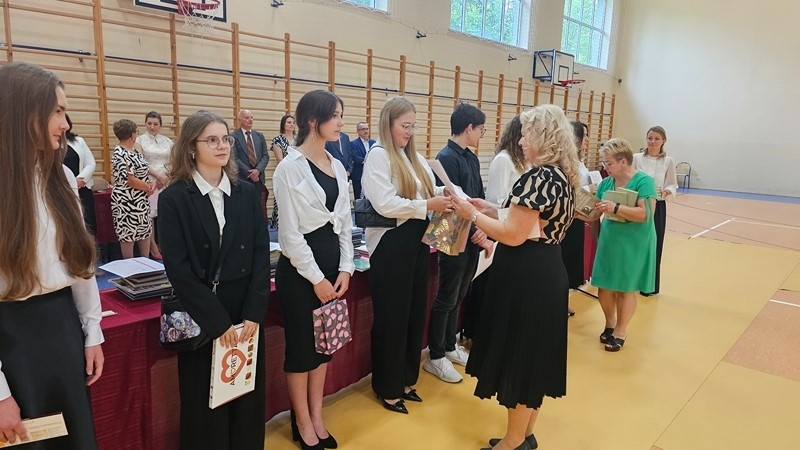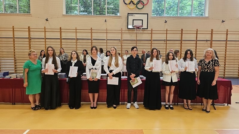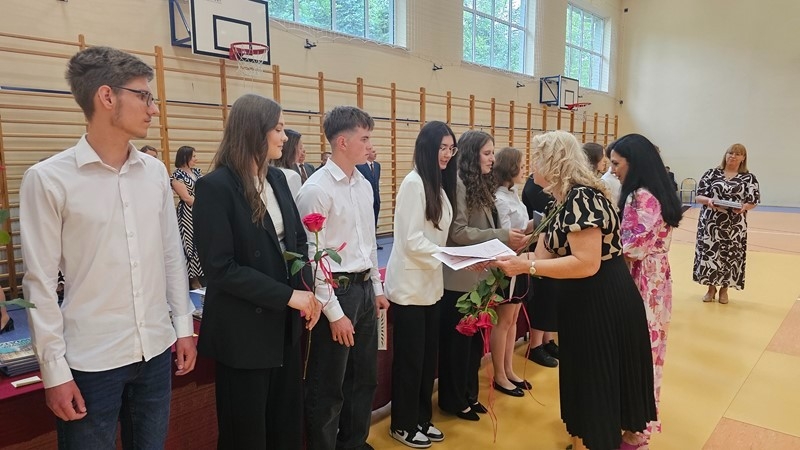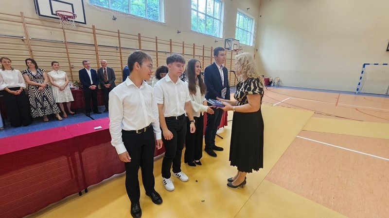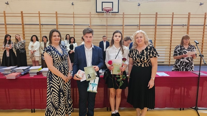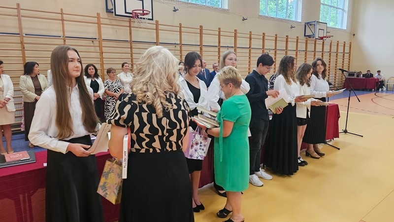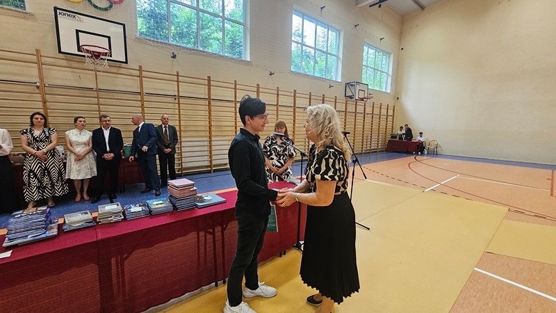 Podczas uroczystości wręczono świadectwa z wyróżnieniem oraz nagrody dla uczniów za osiągnięcia sportowe, sukcesy w konkursach, pracę w radiu szkolnym i przy nagłośnieniu uroczystości szkolnych, wzorową postawę czytelniczą, a także za 100% frekwencję w ciągu całego roku szkolnego.