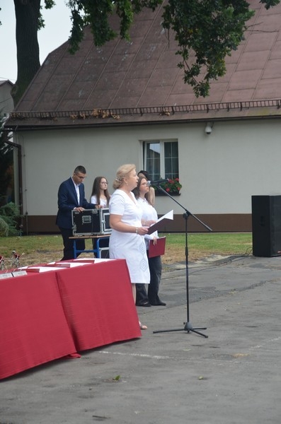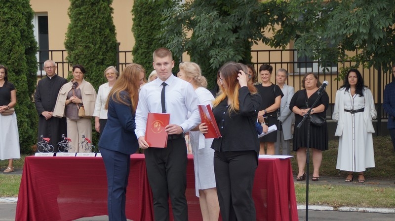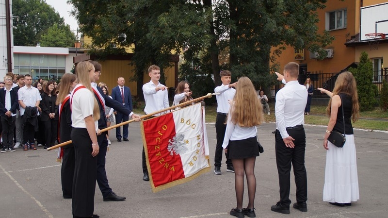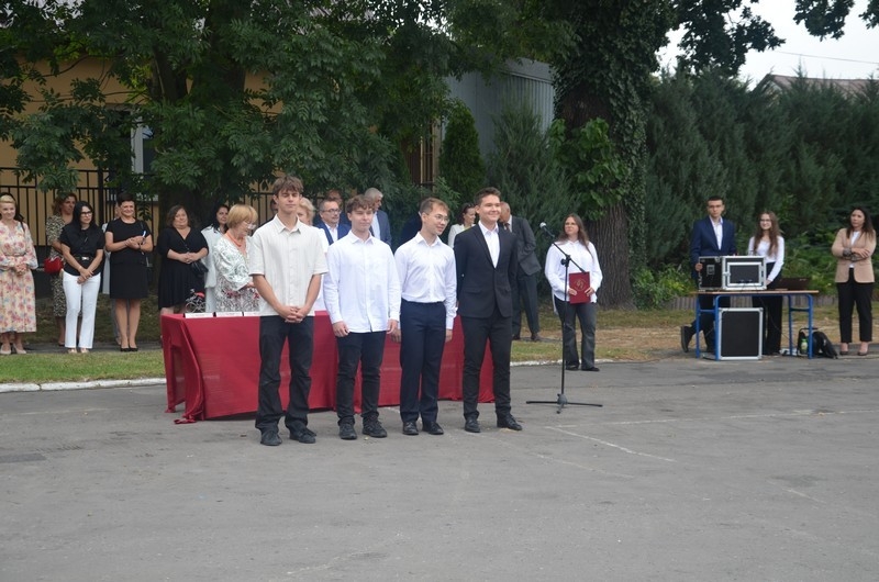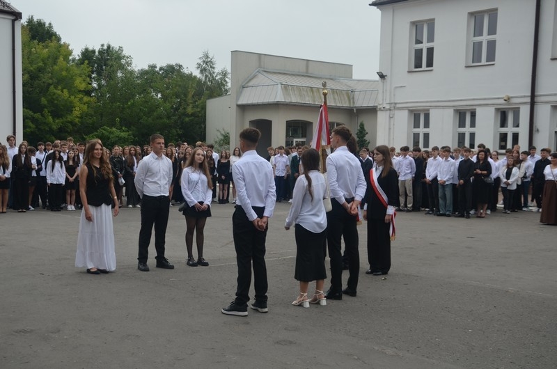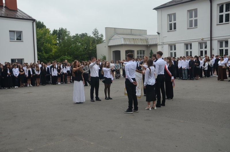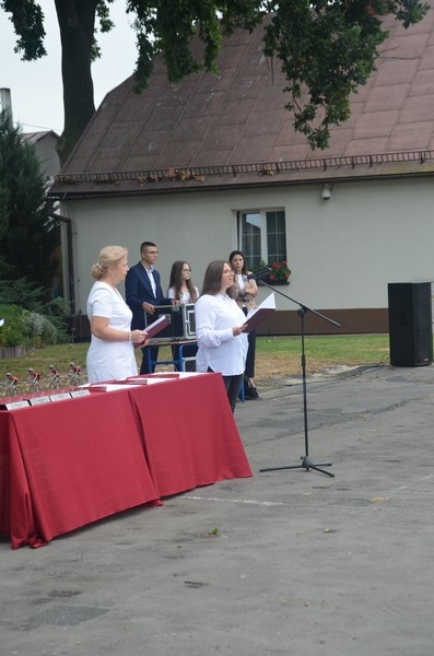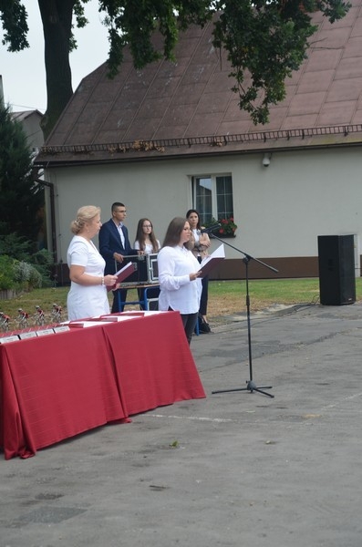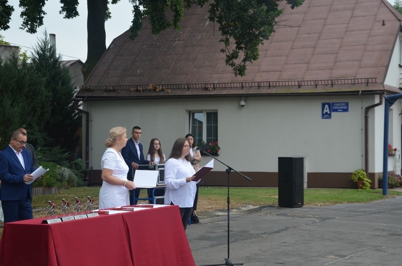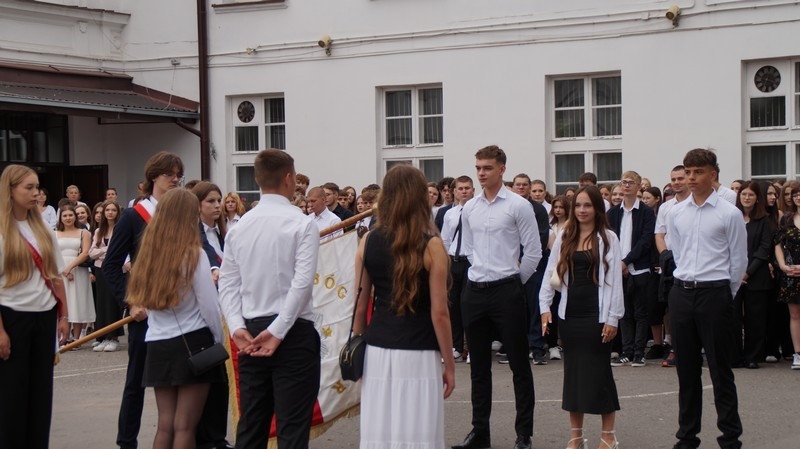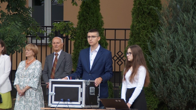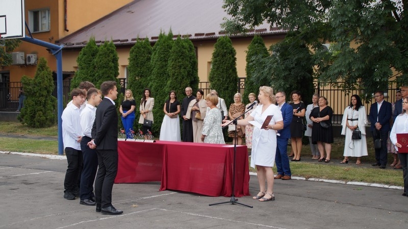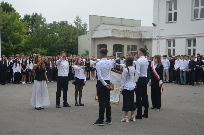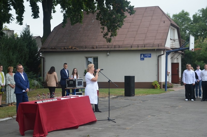 Pani dyrektor Alicja Borkowska w krótkim wystąpieniu powitała wszystkie roczniki uczniów, przypomniała o kolejnej rocznicy wybuchu II wojny światowej - pamięć poległych została uczczona minutą ciszy. Głos zabrała również przewodnicząca szkoły - Dominika Zezula. Następnie przedstawiciele klas pierwszych wzięli udział w ślubowaniu na sztandar szkoły. Rozpoczęcie roku szkolnego było również doskonałą okazją, aby przedstawić uczniów, którzy wyróżnili się szczególnymi osiągnięciami. Pani dyrektor Alicja Borkowska wręczyła stypendia im. płk Franciszka Kornickiego absolwentom szkoły: Wiktorii Bonieckiej, Filipowi Kowalewskiemu (stypendium odebrała mama Filipa) oraz uczniowi klasy IV d: Filipowi Szymańskiemu. Prawdziwą niespodzianką było przekazanie pamiątkowych statuetek uczestnikom wakacyjnej rowerowej wyprawy “Kilometry dla Miłoszka”, której celem było wsparcie leczenia i rehabilitacji wnuczka pani Reginy Kopery, emerytowanej nauczycielki naszego liceum. Statuetki otrzymali: Jakub Sowa, Karol Fietko, Paweł Budzyński i Bartosz Czerwiński - członkowie ekipy Sówka i Przyjaciele. Dokonania stypendystów oraz piękna postawa ekipy rowerowego dobra to doskonała motywacja dla uczniów rozpoczynających rok szkolny do wyznaczania sobie ambitnych celów i sięgania tam, “gdzie wzrok nie sięga”.