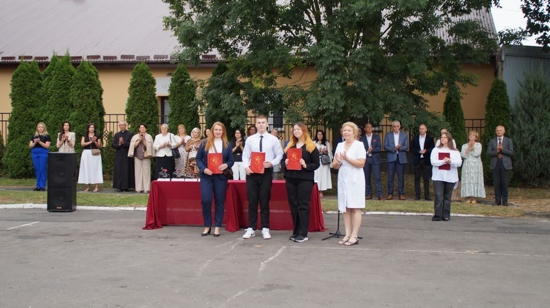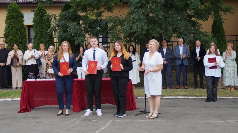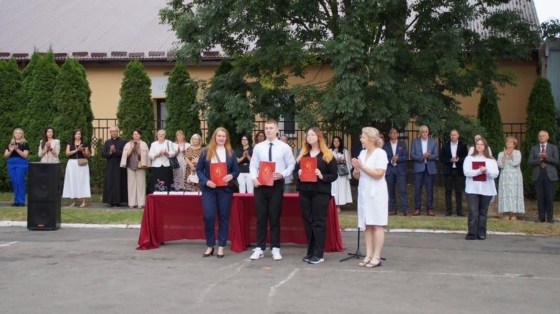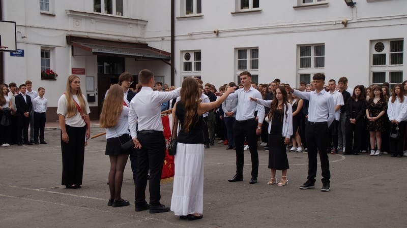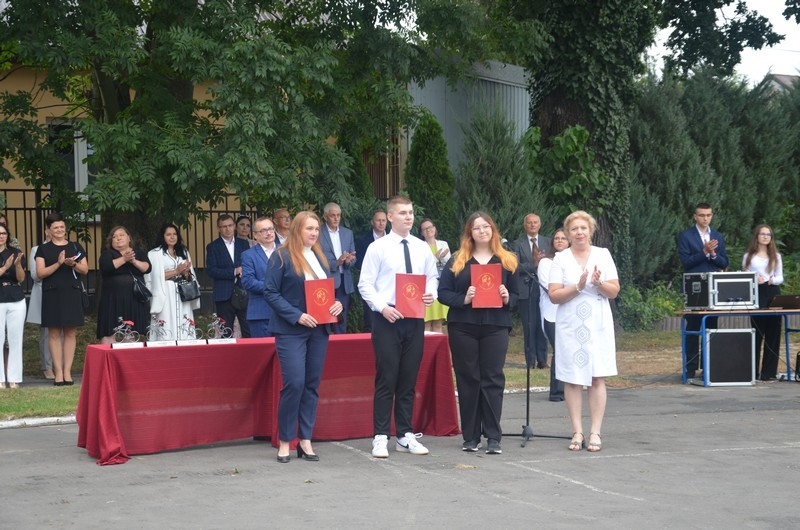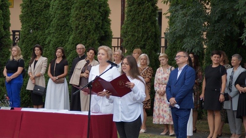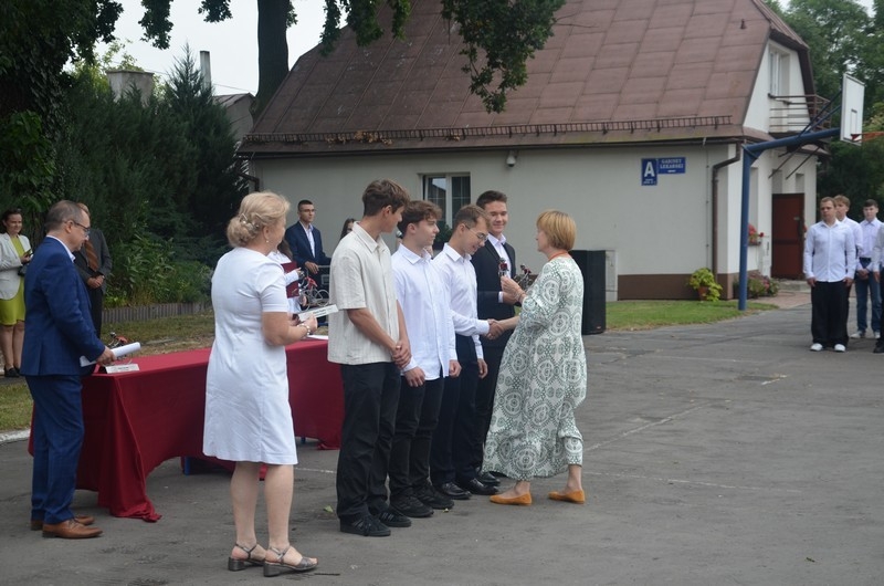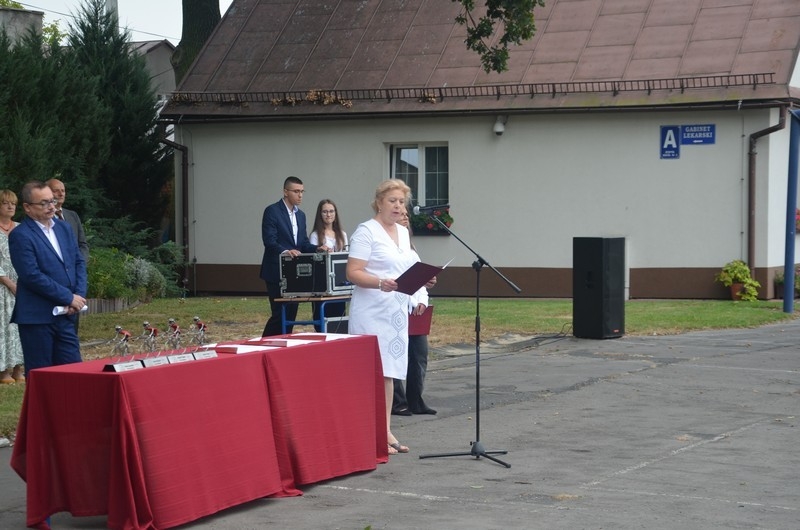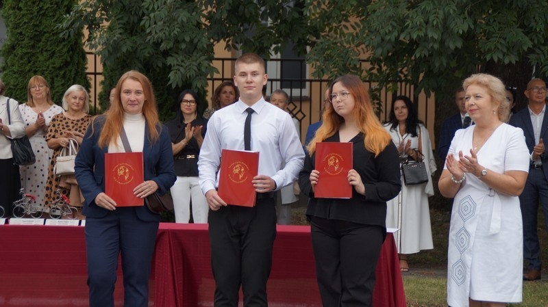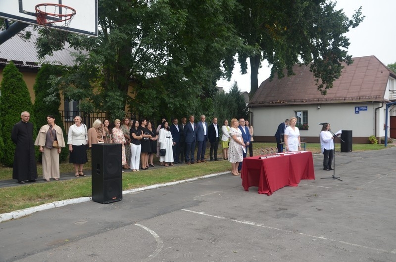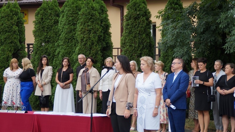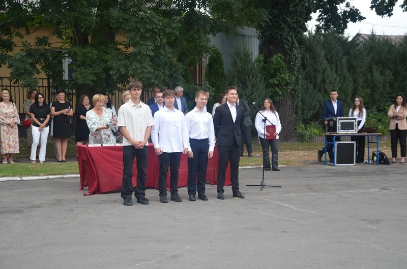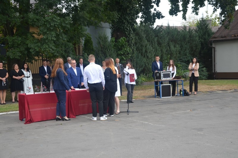 Pani dyrektor Alicja Borkowska w krótkim wystąpieniu powitała wszystkie roczniki uczniów, przypomniała o kolejnej rocznicy wybuchu II wojny światowej - pamięć poległych została uczczona minutą ciszy. Głos zabrała również przewodnicząca szkoły - Dominika Zezula. Następnie przedstawiciele klas pierwszych wzięli udział w ślubowaniu na sztandar szkoły. Rozpoczęcie roku szkolnego było również doskonałą okazją, aby przedstawić uczniów, którzy wyróżnili się szczególnymi osiągnięciami. Pani dyrektor Alicja Borkowska wręczyła stypendia im. płk Franciszka Kornickiego absolwentom szkoły: Wiktorii Bonieckiej, Filipowi Kowalewskiemu (stypendium odebrała mama Filipa) oraz uczniowi klasy IV d: Filipowi Szymańskiemu. Prawdziwą niespodzianką było przekazanie pamiątkowych statuetek uczestnikom wakacyjnej rowerowej wyprawy “Kilometry dla Miłoszka”, której celem było wsparcie leczenia i rehabilitacji wnuczka pani Reginy Kopery, emerytowanej nauczycielki naszego liceum. Statuetki otrzymali: Jakub Sowa, Karol Fietko, Paweł Budzyński i Bartosz Czerwiński - członkowie ekipy Sówka i Przyjaciele. Dokonania stypendystów oraz piękna postawa ekipy rowerowego dobra to doskonała motywacja dla uczniów rozpoczynających rok szkolny do wyznaczania sobie ambitnych celów i sięgania tam, “gdzie wzrok nie sięga”.