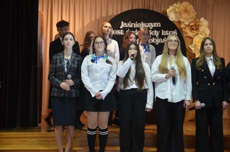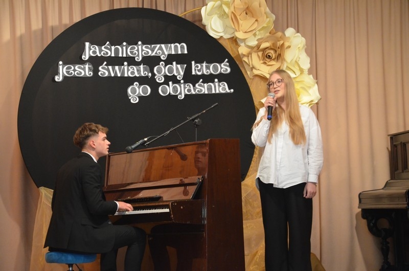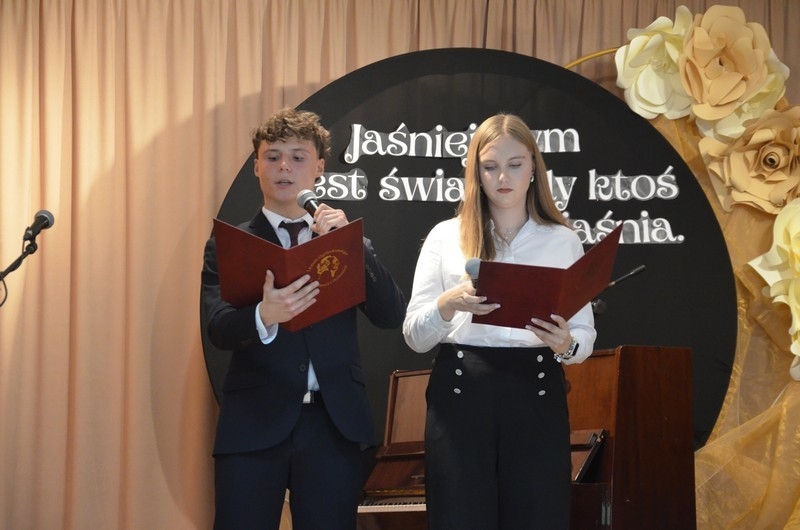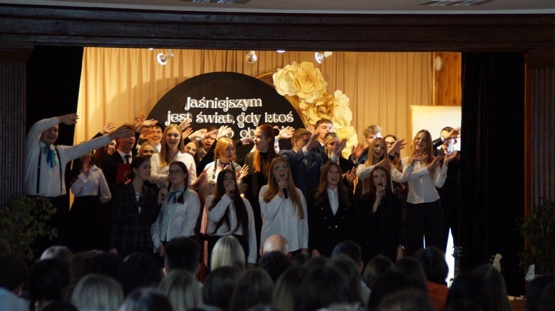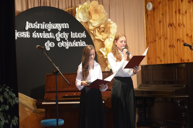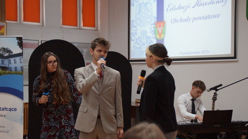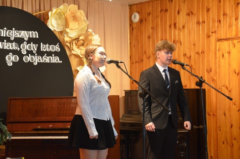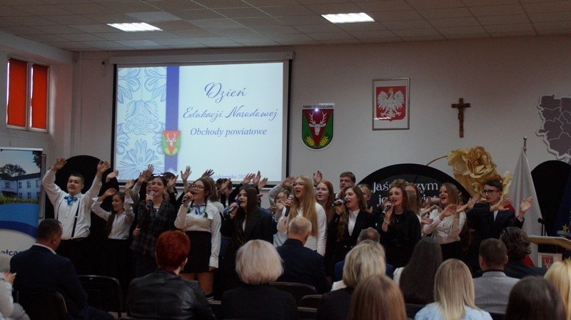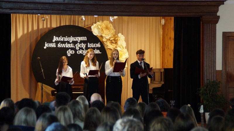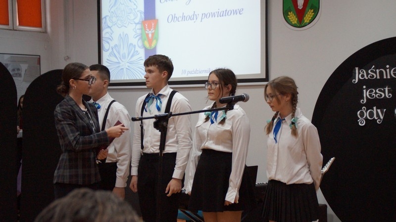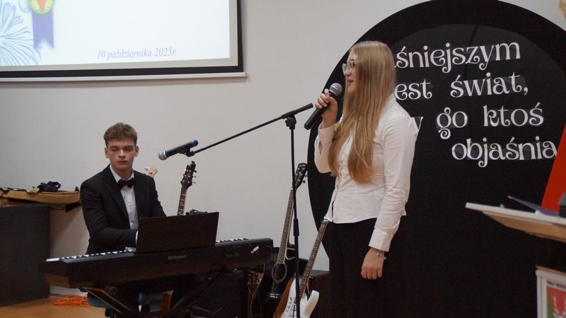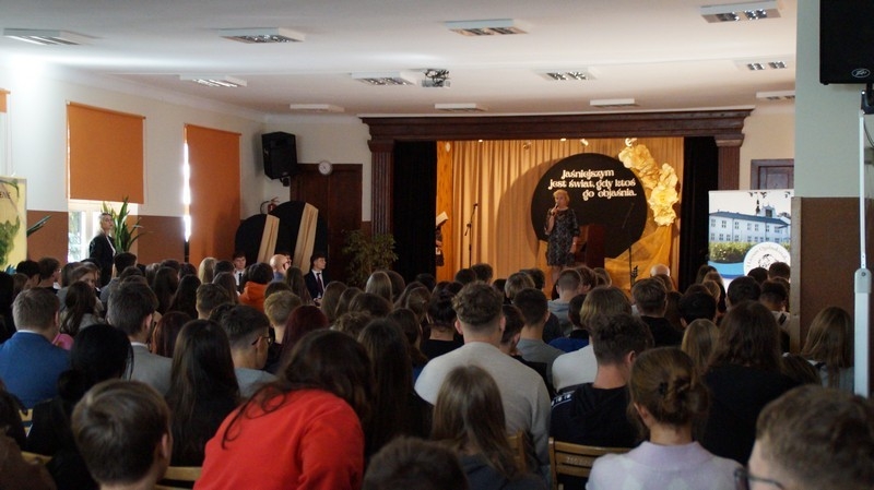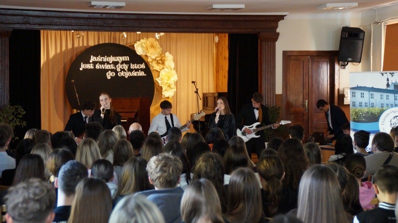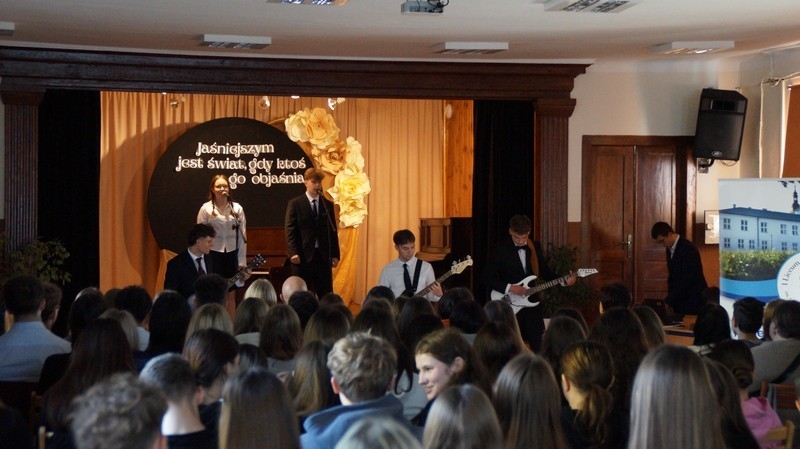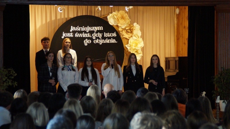 Z okazji Dnia Edukacji Narodowej uczniowie naszego liceum przygotowali program artystyczny pod hasłem: “Jaśniejszym jest świat, gdy go ktoś objaśnia”. Przedstawienie miało swoją premierę w piątek, 10. października, w siedzibie Starostwa Powiatowego podczas powiatowych obchodów Dnia Edukacji Narodowej, a następnie zostało zaprezentowane nauczycielom, pracownikom administracji i obsługi oraz uczniom w środę, 15. października, w szkolnej auli podczas uroczystej akademii.