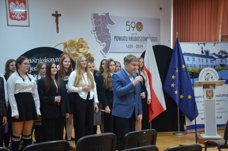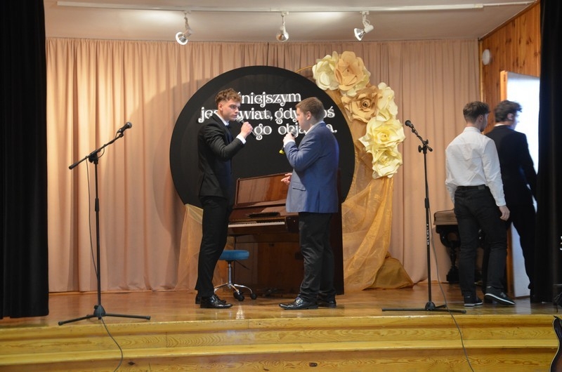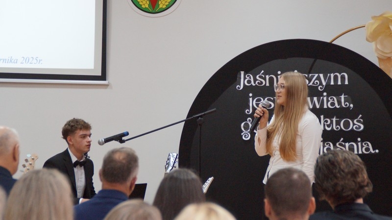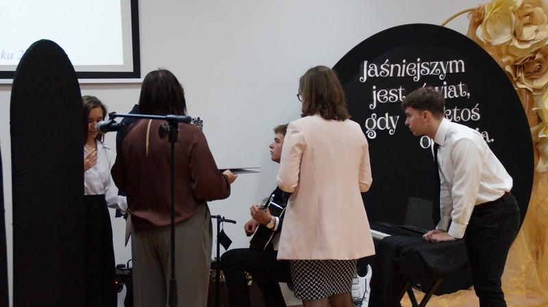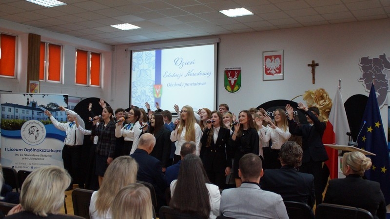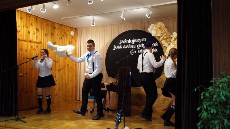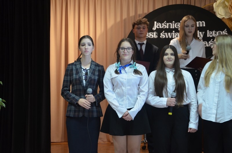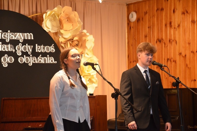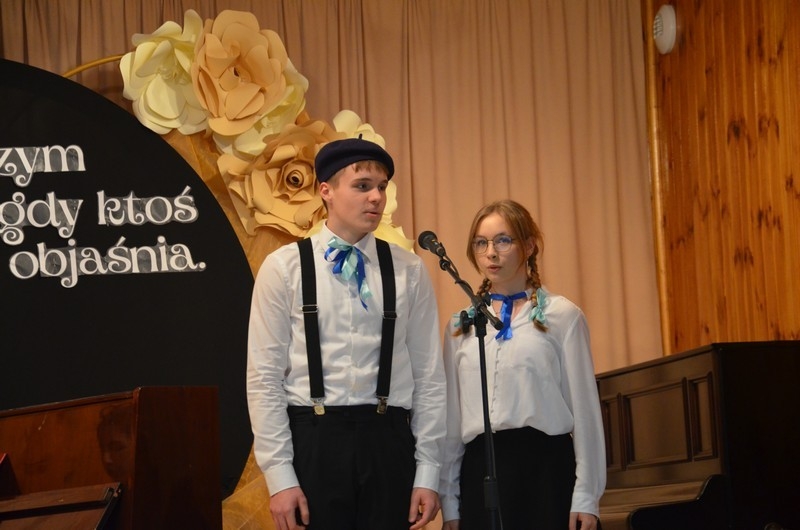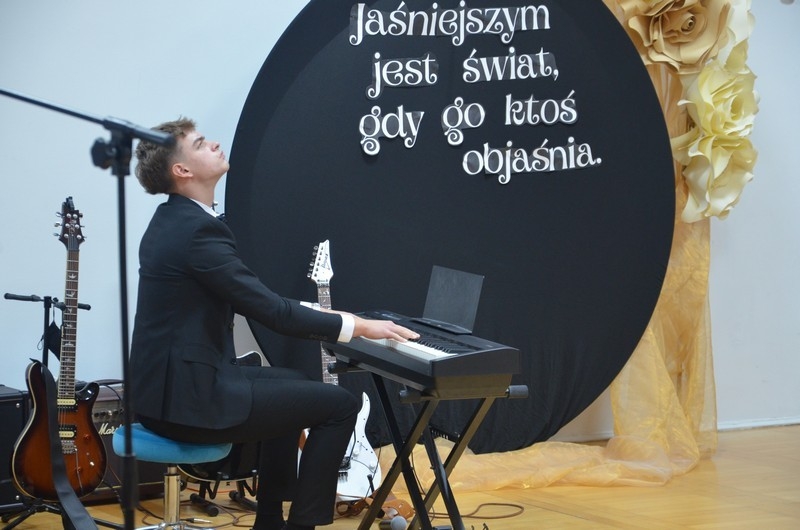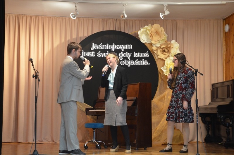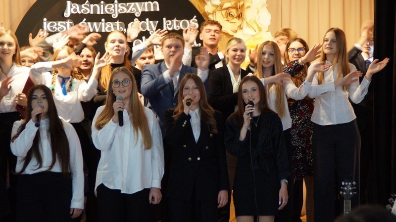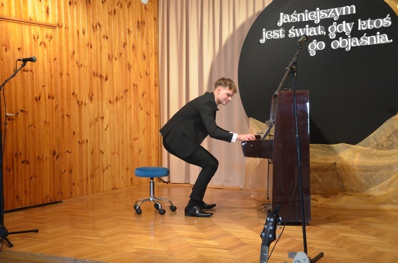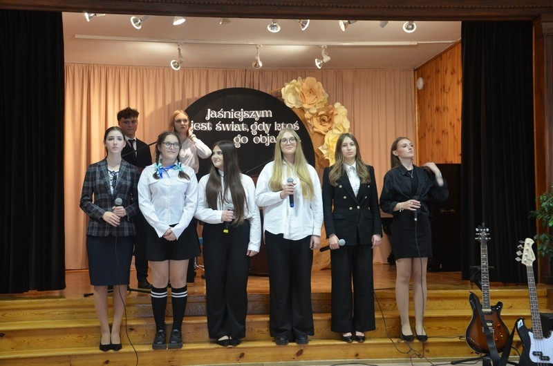 Z okazji Dnia Edukacji Narodowej uczniowie naszego liceum przygotowali program artystyczny pod hasłem: “Jaśniejszym jest świat, gdy go ktoś objaśnia”. Przedstawienie miało swoją premierę w piątek, 10. października, w siedzibie Starostwa Powiatowego podczas powiatowych obchodów Dnia Edukacji Narodowej, a następnie zostało zaprezentowane nauczycielom, pracownikom administracji i obsługi oraz uczniom w środę, 15. października, w szkolnej auli podczas uroczystej akademii.