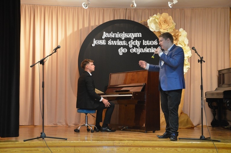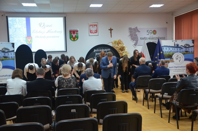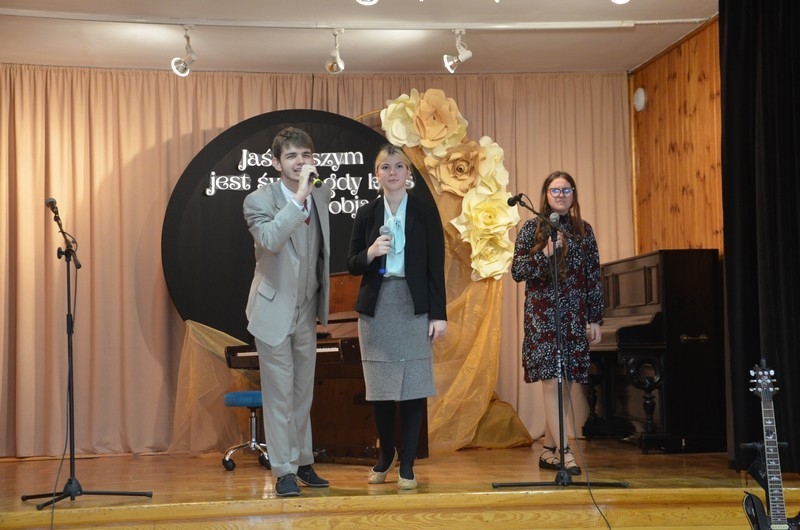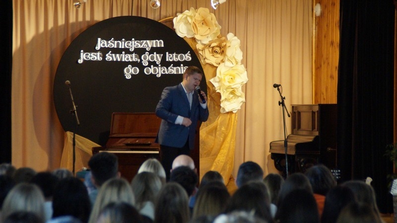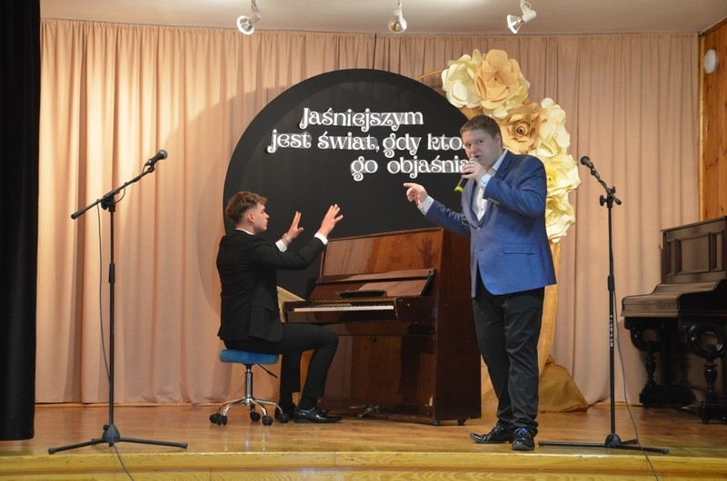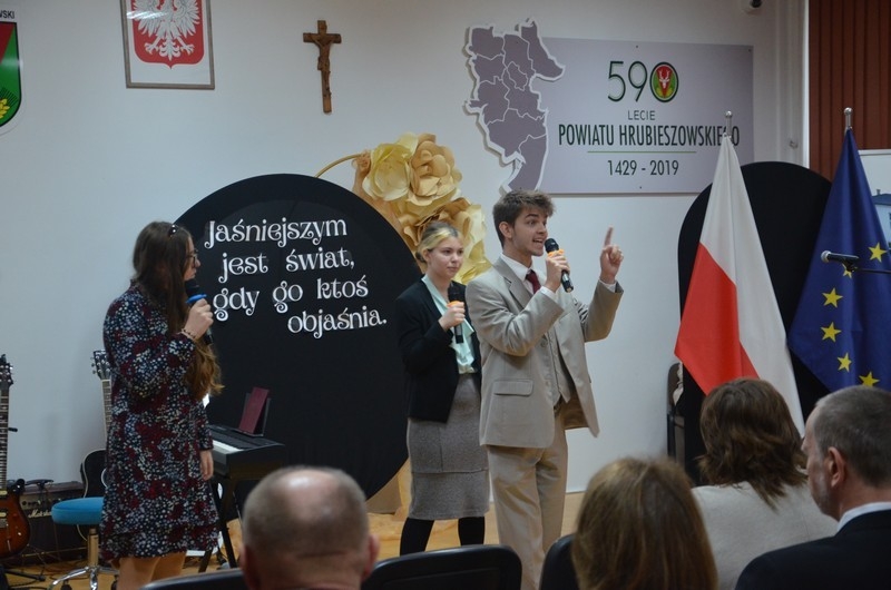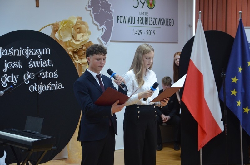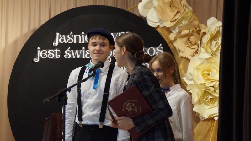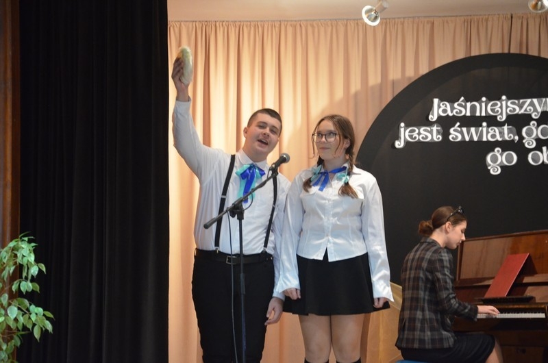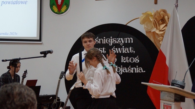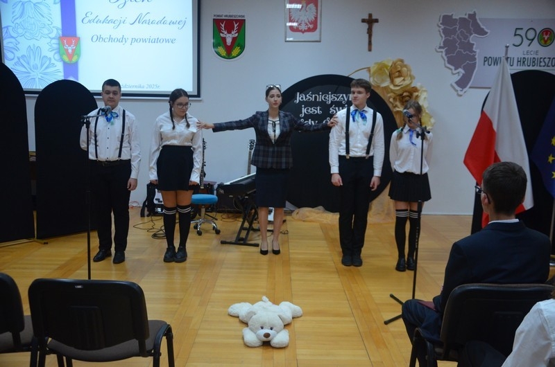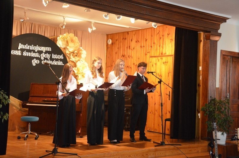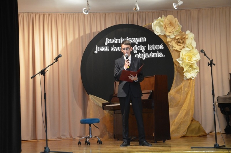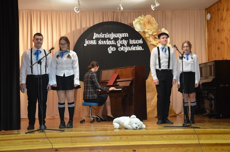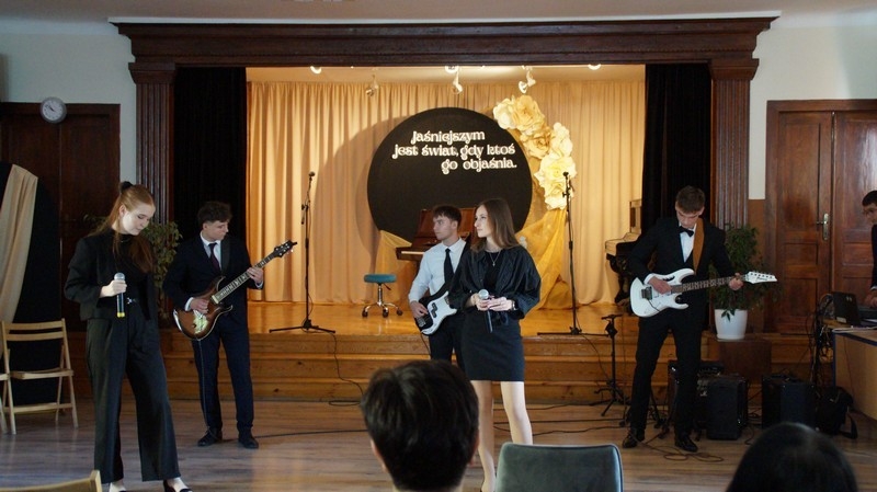 Z okazji Dnia Edukacji Narodowej uczniowie naszego liceum przygotowali program artystyczny pod hasłem: “Jaśniejszym jest świat, gdy go ktoś objaśnia”. Przedstawienie miało swoją premierę w piątek, 10. października, w siedzibie Starostwa Powiatowego podczas powiatowych obchodów Dnia Edukacji Narodowej, a następnie zostało zaprezentowane nauczycielom, pracownikom administracji i obsługi oraz uczniom w środę, 15. października, w szkolnej auli podczas uroczystej akademii.