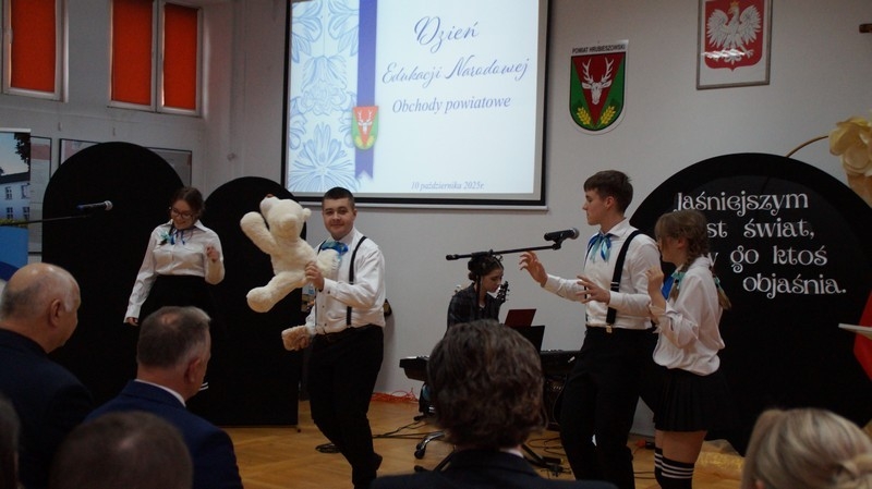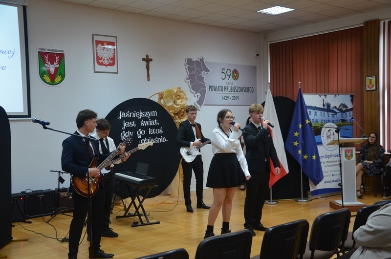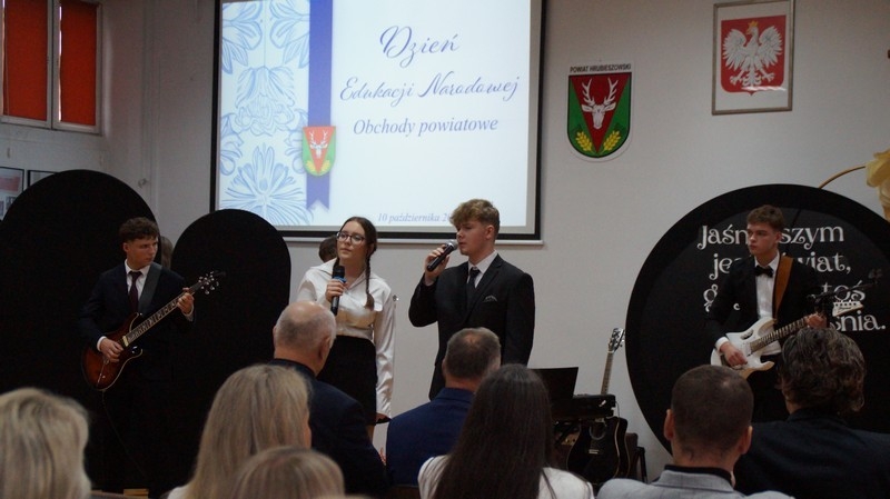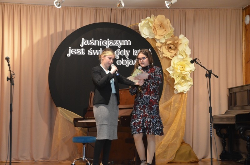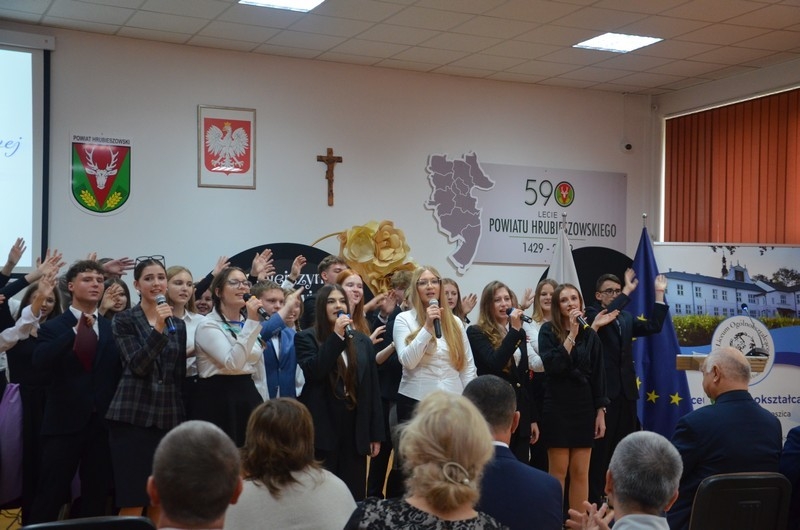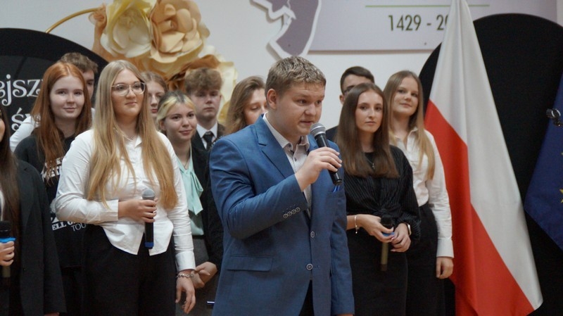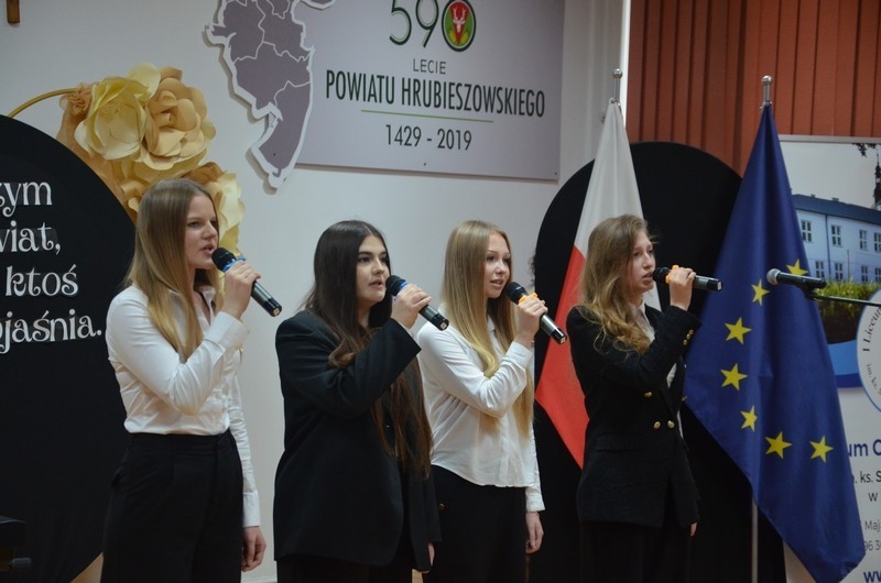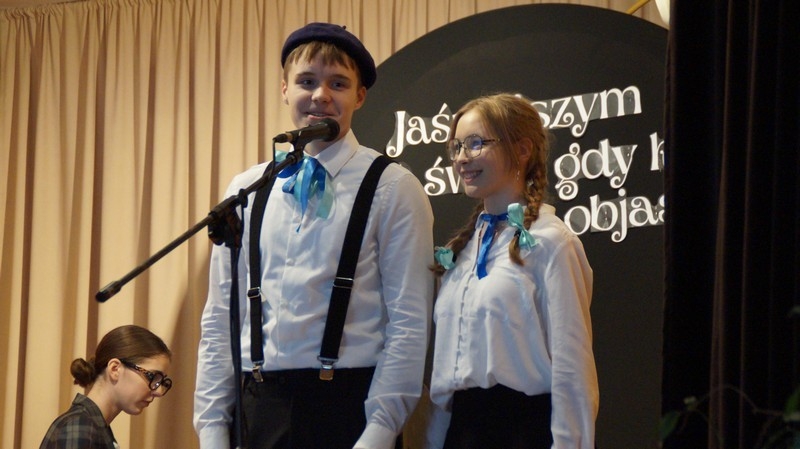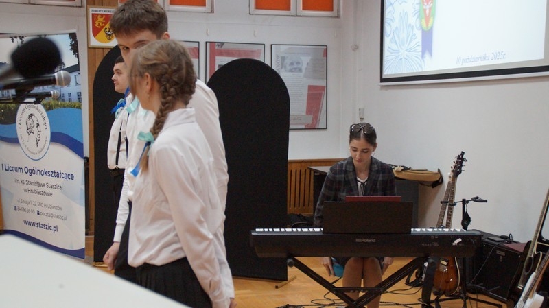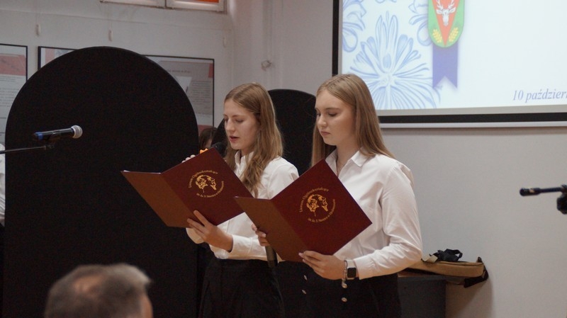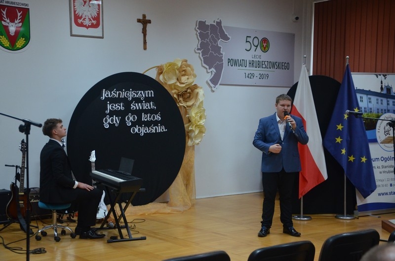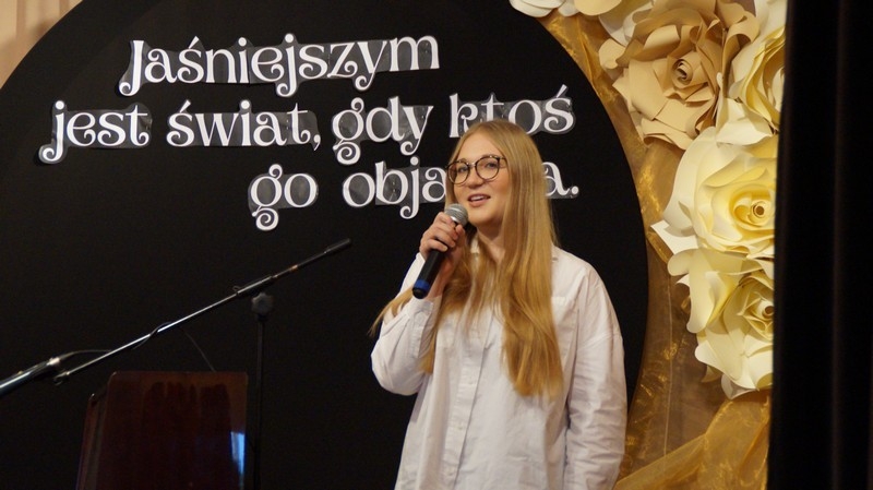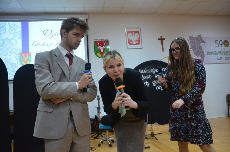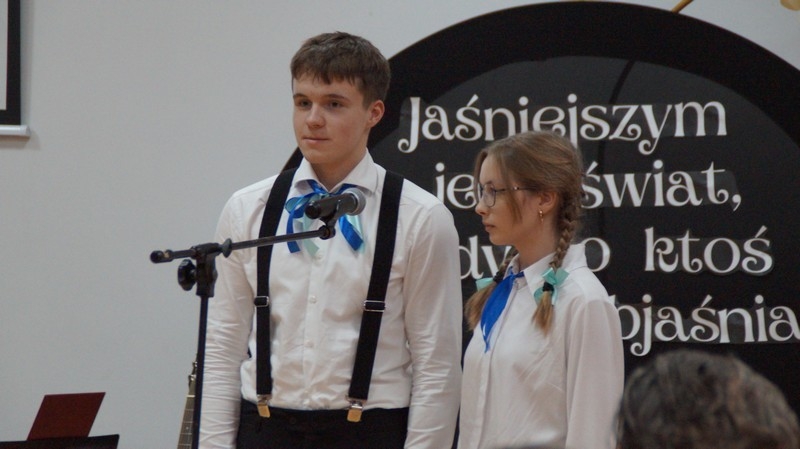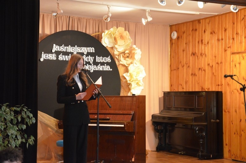 Z okazji Dnia Edukacji Narodowej uczniowie naszego liceum przygotowali program artystyczny pod hasłem: “Jaśniejszym jest świat, gdy go ktoś objaśnia”. Przedstawienie miało swoją premierę w piątek, 10. października, w siedzibie Starostwa Powiatowego podczas powiatowych obchodów Dnia Edukacji Narodowej, a następnie zostało zaprezentowane nauczycielom, pracownikom administracji i obsługi oraz uczniom w środę, 15. października, w szkolnej auli podczas uroczystej akademii.