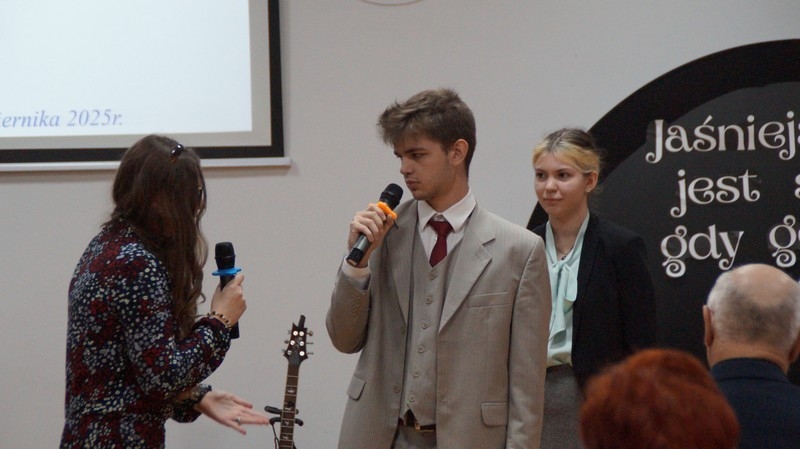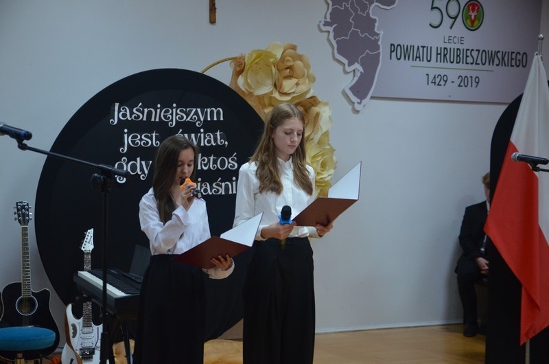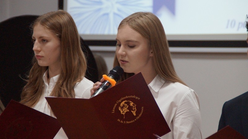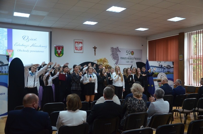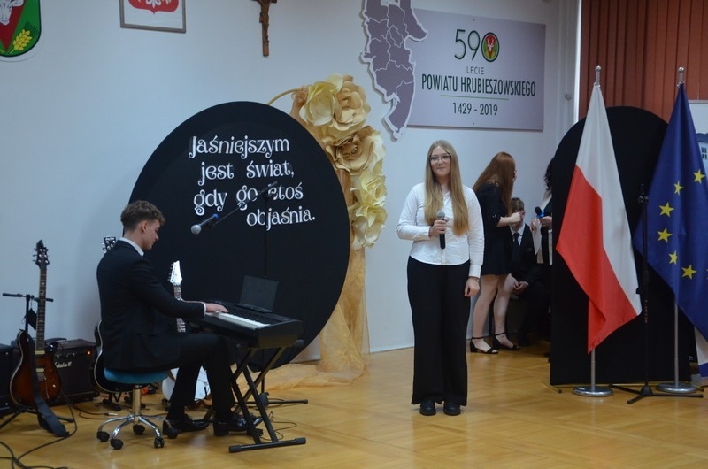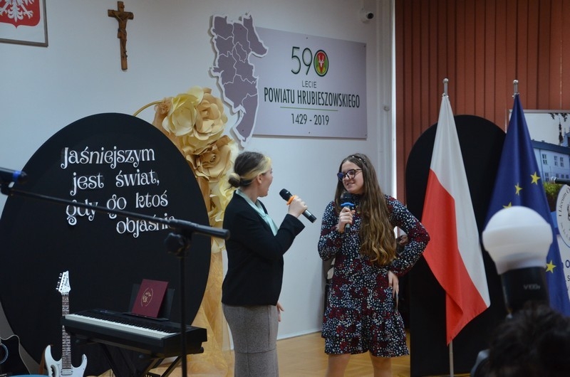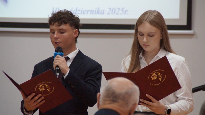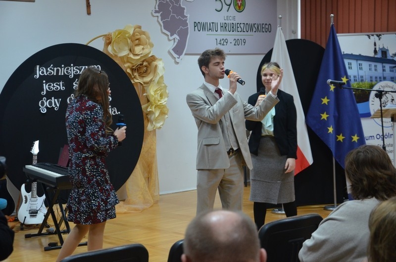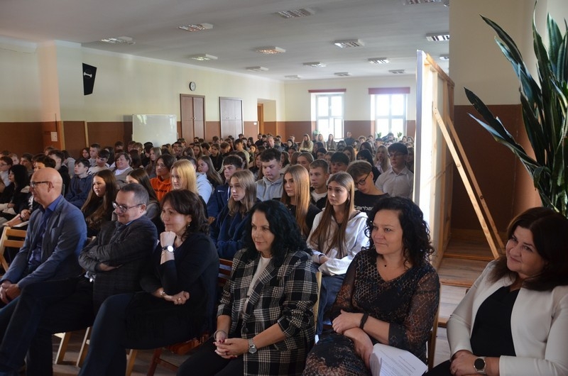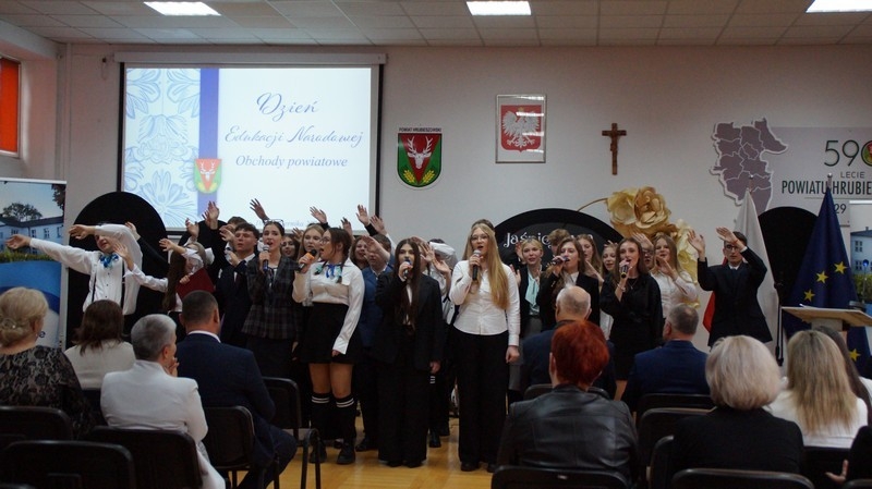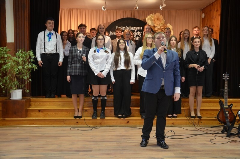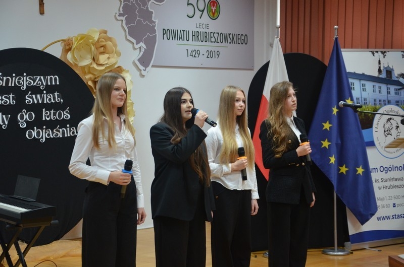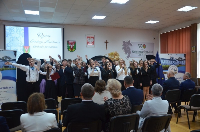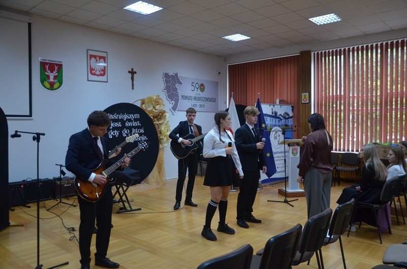 Z okazji Dnia Edukacji Narodowej uczniowie naszego liceum przygotowali program artystyczny pod hasłem: “Jaśniejszym jest świat, gdy go ktoś objaśnia”. Przedstawienie miało swoją premierę w piątek, 10. października, w siedzibie Starostwa Powiatowego podczas powiatowych obchodów Dnia Edukacji Narodowej, a następnie zostało zaprezentowane nauczycielom, pracownikom administracji i obsługi oraz uczniom w środę, 15. października, w szkolnej auli podczas uroczystej akademii.