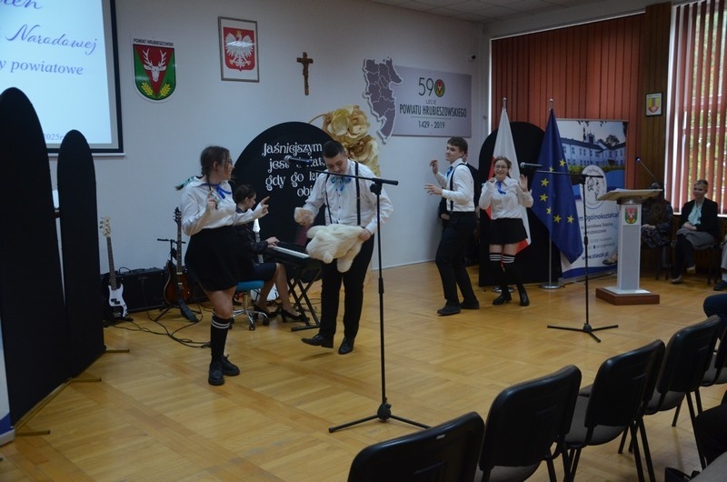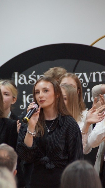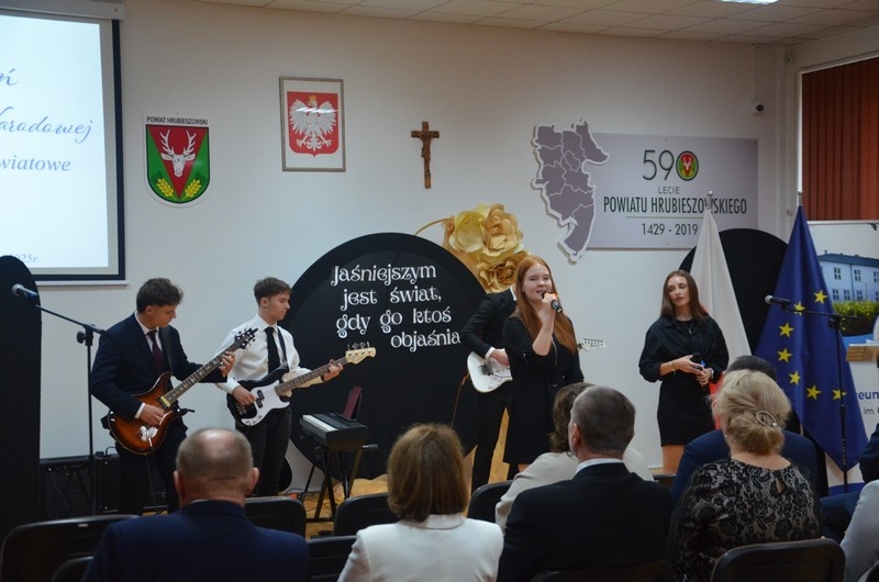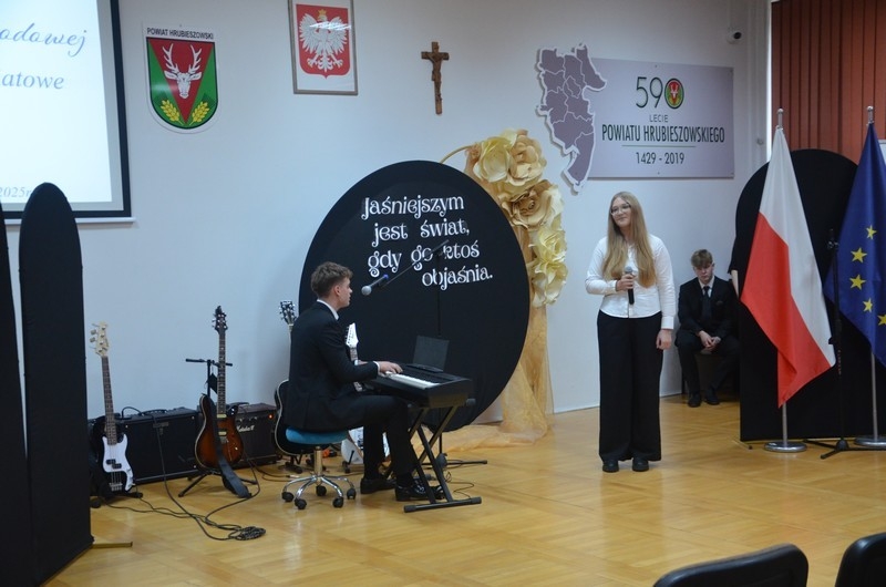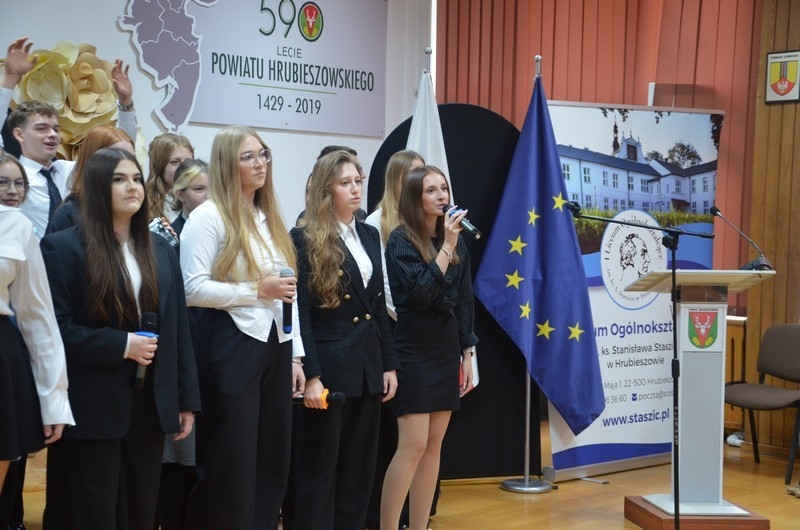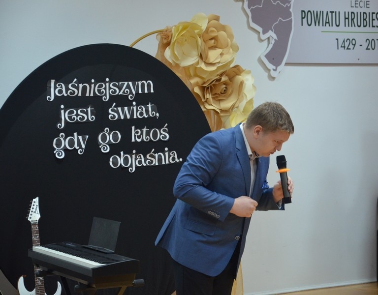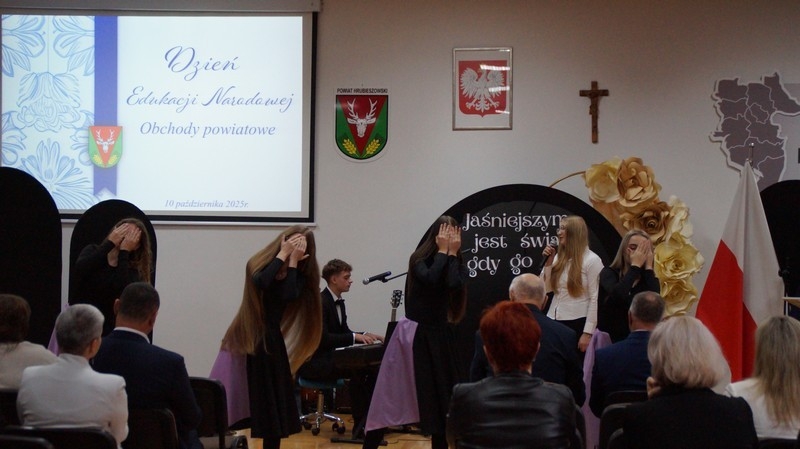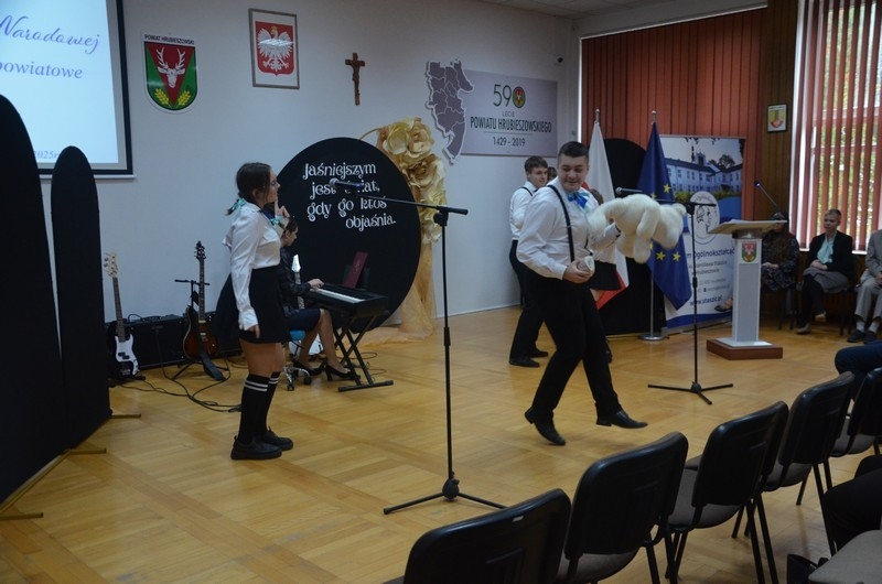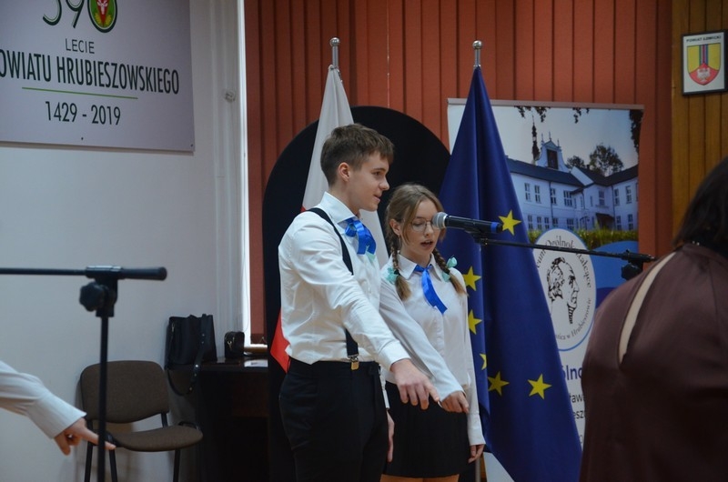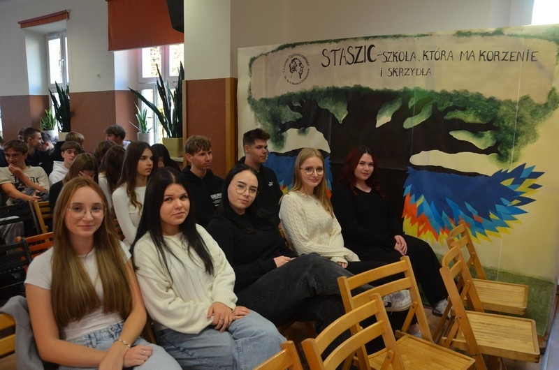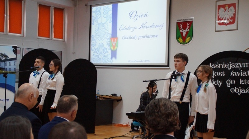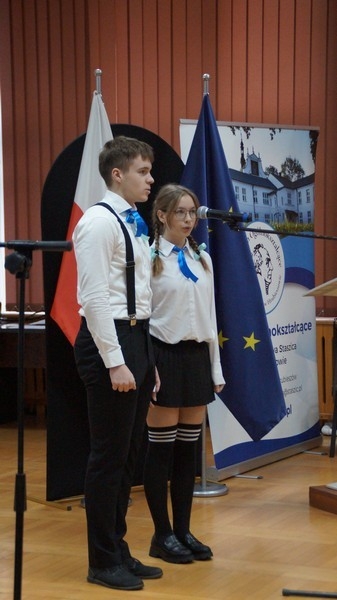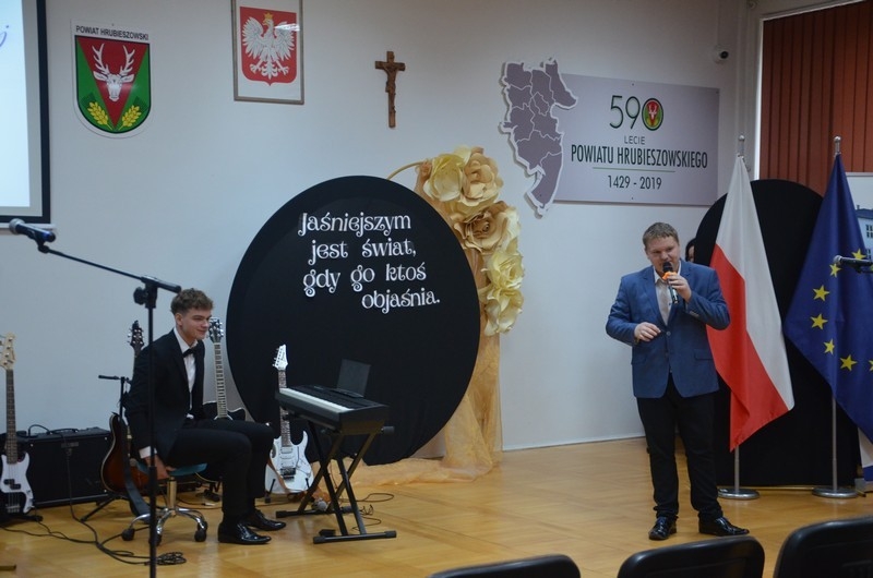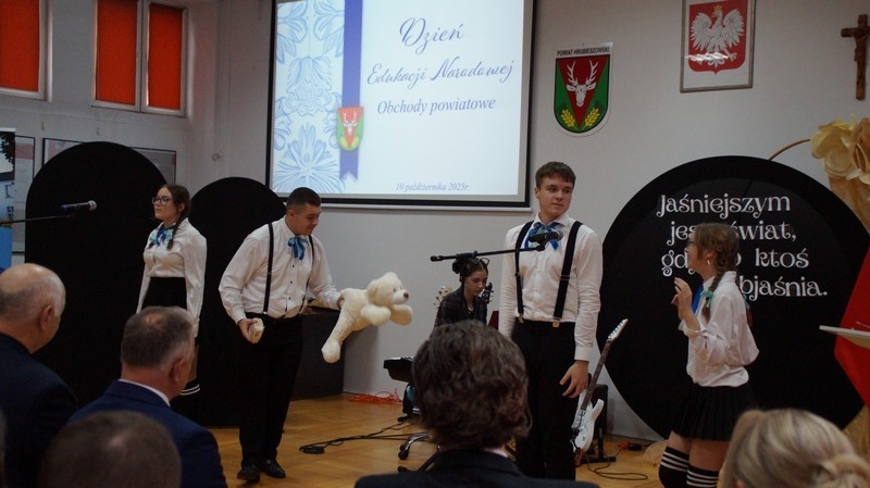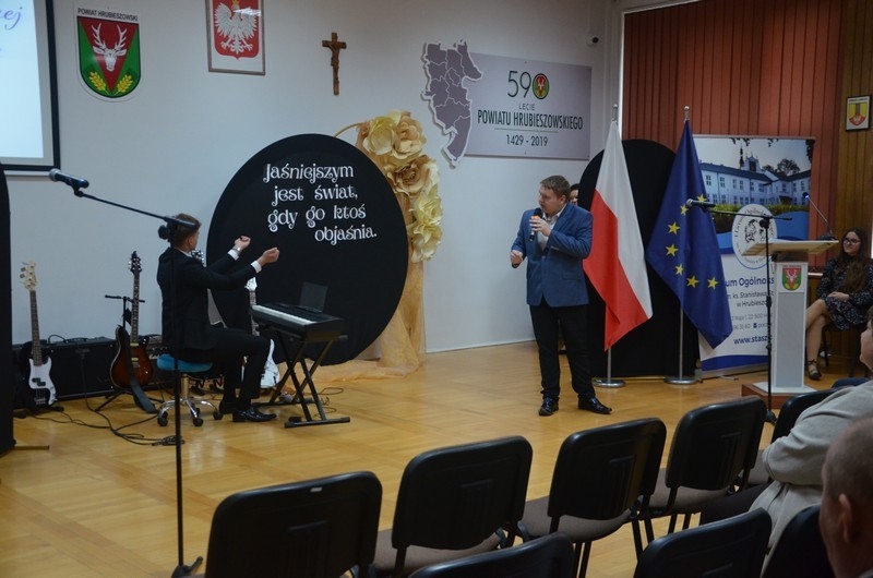 Z okazji Dnia Edukacji Narodowej uczniowie naszego liceum przygotowali program artystyczny pod hasłem: “Jaśniejszym jest świat, gdy go ktoś objaśnia”. Przedstawienie miało swoją premierę w piątek, 10. października, w siedzibie Starostwa Powiatowego podczas powiatowych obchodów Dnia Edukacji Narodowej, a następnie zostało zaprezentowane nauczycielom, pracownikom administracji i obsługi oraz uczniom w środę, 15. października, w szkolnej auli podczas uroczystej akademii.