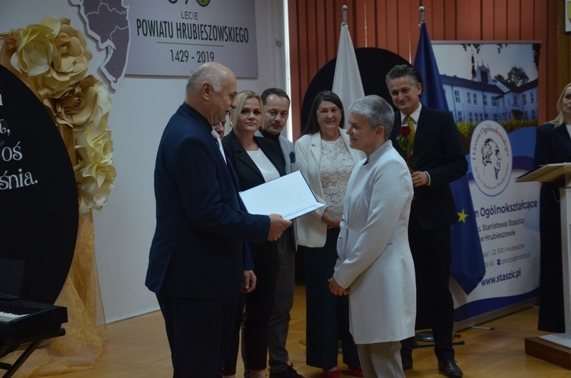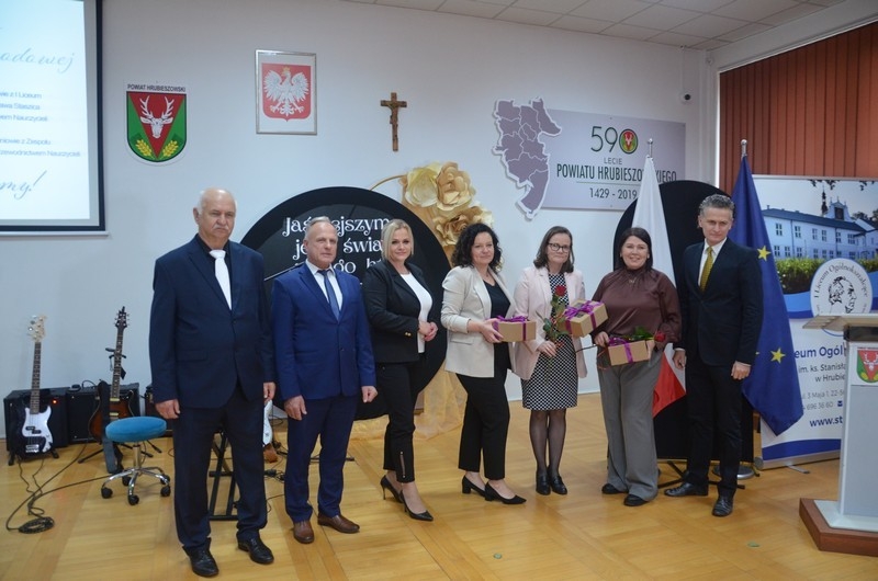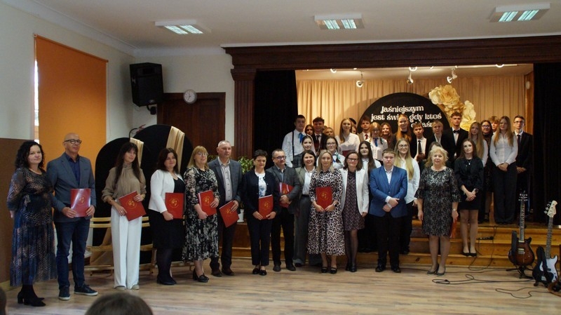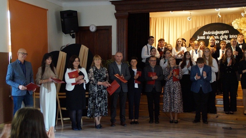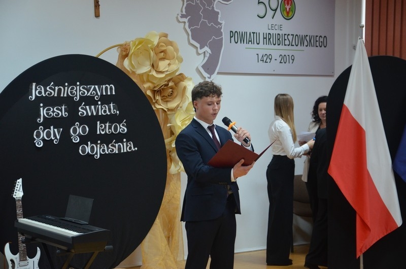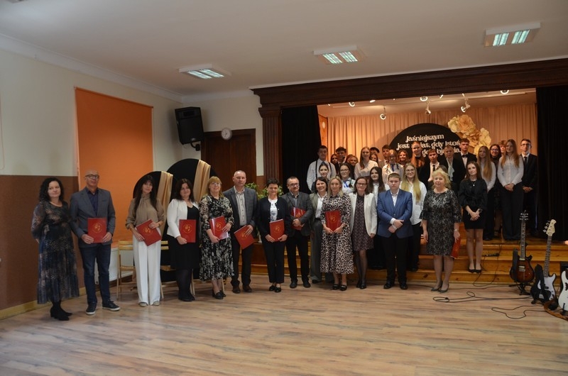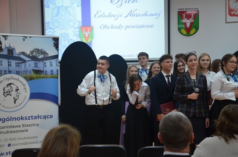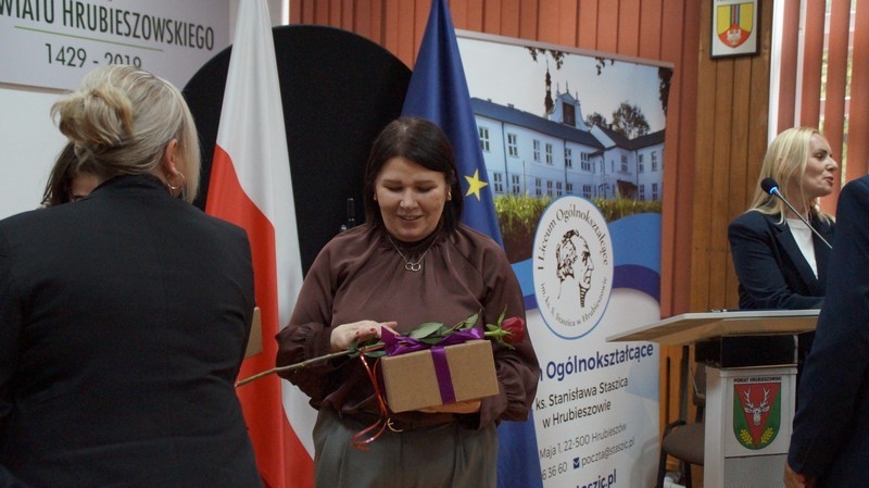 Dzień Edukacji Narodowej to czas refleksji, okazywania wdzięczności i wyrażania życzeń na przyszłość - w imieniu uczniów głos zabrała przewodnicząca Samorządu Uczniowskiego, Gabriela Czerw, która w pięknych słowach przybliżyła misję nauczycieli i podziękowała za ich pracę. To również czas szczególnego doceniania nauczycieli przez dyrektorów szkół i władze samorządowe będące organami prowadzącymi szkoły. W tym roku szkolnym nagrodę Starosty Hrubieszowskiego otrzymała p. Agnieszka Jamroż, a nagrody Dyrektora z rąk p. Alicji Borkowskiej odebrali następujący nauczyciele: p. Marzena Banach, p. Barbara Brzezicka, p. Andrzej Chwedczuk, p. Anna Czerw, p. Elżbieta Dąbrowska, p. Jarosław Grzeszczuk, p. Magdalena Kamińska, p. Marek Krasiński i p. Anna Pękowska. Gratulujemy i raz jeszcze życzymy dużo radości, satysfakcji z wykonywanej pracy, uśmiechu i wszelkiej pomyślności.