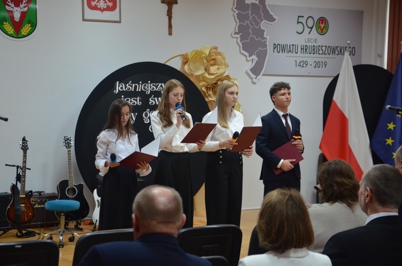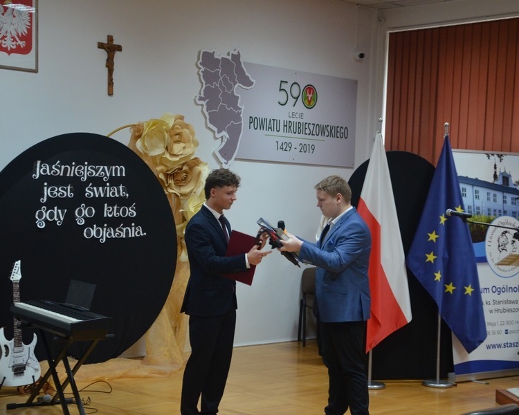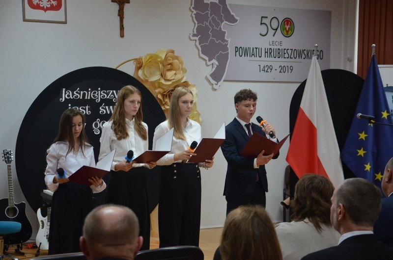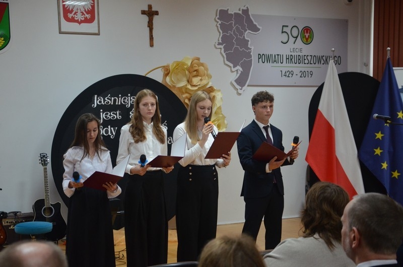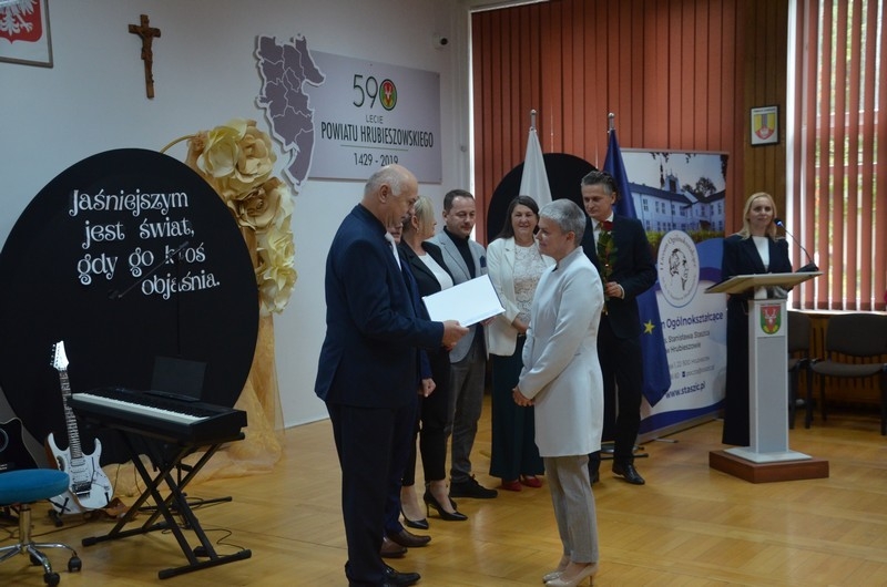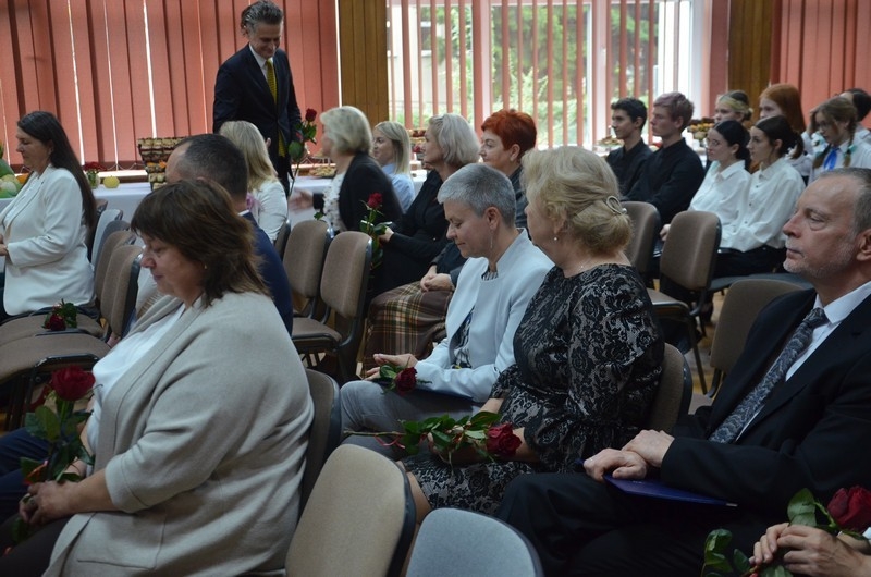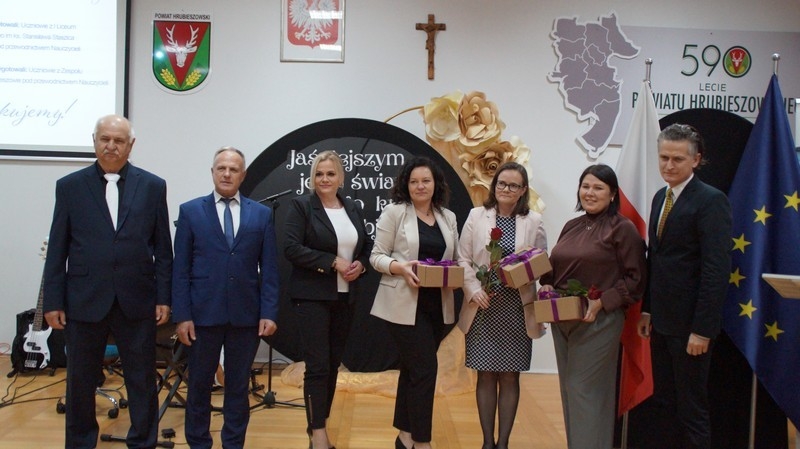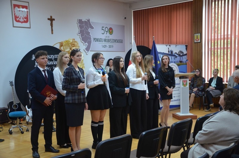 Dzień Edukacji Narodowej to czas refleksji, okazywania wdzięczności i wyrażania życzeń na przyszłość - w imieniu uczniów głos zabrała przewodnicząca Samorządu Uczniowskiego, Gabriela Czerw, która w pięknych słowach przybliżyła misję nauczycieli i podziękowała za ich pracę. To również czas szczególnego doceniania nauczycieli przez dyrektorów szkół i władze samorządowe będące organami prowadzącymi szkoły. W tym roku szkolnym nagrodę Starosty Hrubieszowskiego otrzymała p. Agnieszka Jamroż, a nagrody Dyrektora z rąk p. Alicji Borkowskiej odebrali następujący nauczyciele: p. Marzena Banach, p. Barbara Brzezicka, p. Andrzej Chwedczuk, p. Anna Czerw, p. Elżbieta Dąbrowska, p. Jarosław Grzeszczuk, p. Magdalena Kamińska, p. Marek Krasiński i p. Anna Pękowska. Gratulujemy i raz jeszcze życzymy dużo radości, satysfakcji z wykonywanej pracy, uśmiechu i wszelkiej pomyślności.