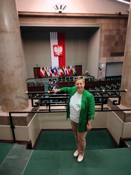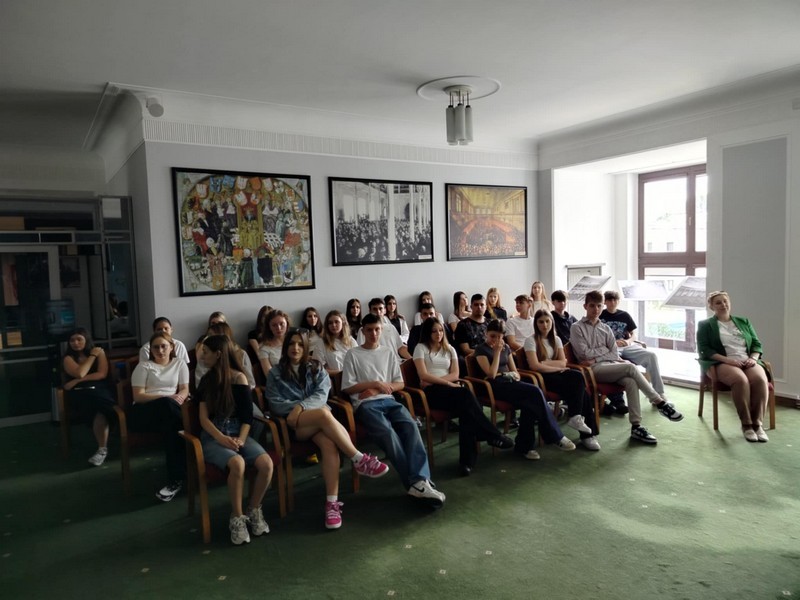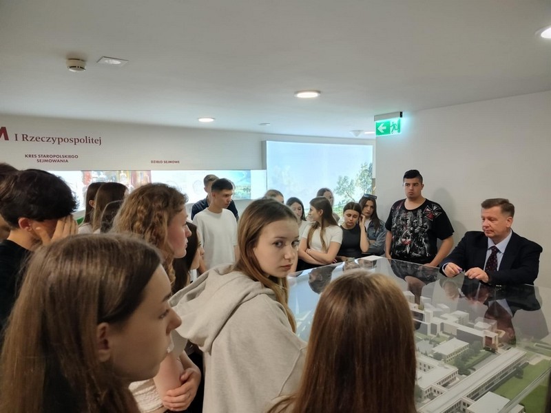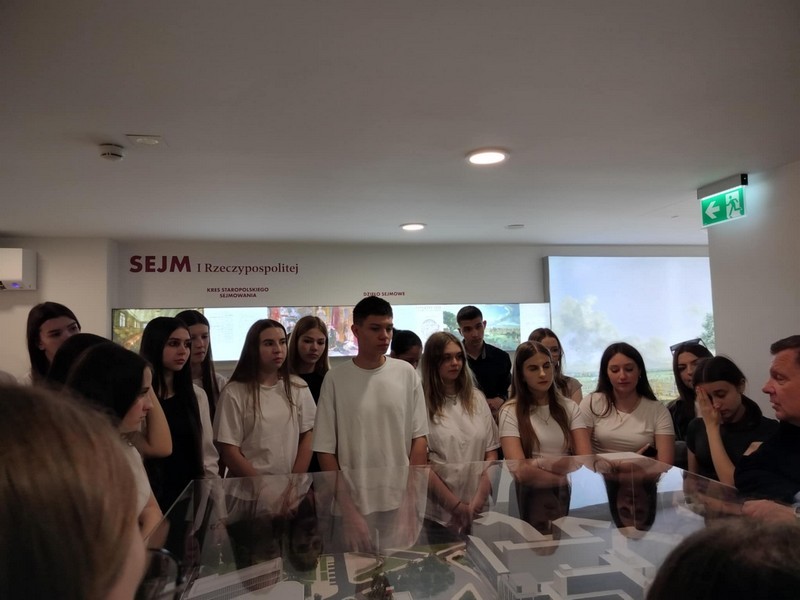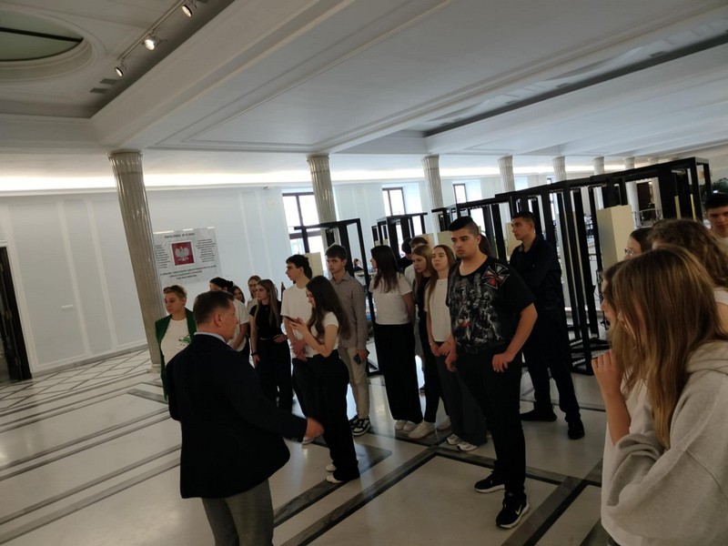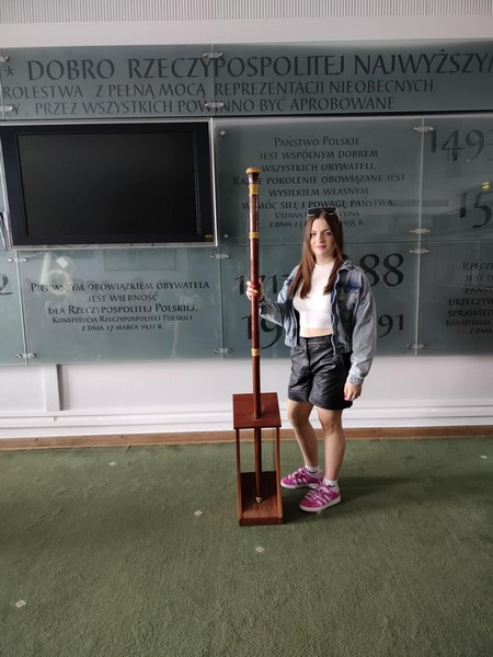 Pierwszego dnia odwiedziliśmy Muzeum Marii Skłodowskiej-Curie, gdzie poznaliśmy życie i osiągnięcia jednej z najwybitniejszych polskich uczonych. Muzeum, choć niewielkie, zrobiło na nas duże wrażenie – dzięki multimedialnym prezentacjom i eksponatom mogliśmy lepiej zrozumieć jej niezwykłą drogę naukową. Po zakończeniu zwiedzania przeszliśmy spacerem w kierunku Starego Miasta, podziwiając po drodze architekturę Warszawy. Wieczorem udaliśmy się do Teatru Muzycznego ROMA, gdzie obejrzeliśmy musical Wicked. Spektakl był niezwykle widowiskowy – piękne kostiumy, doskonała gra aktorska i wciągająca muzyka sprawiły, że wielu z nas jeszcze długo po przedstawieniu rozmawiało o jego najlepszych scenach. Drugi dzień rozpoczęliśmy od wizyty w Sejmie Rzeczypospolitej Polskiej. Mieliśmy okazję zobaczyć salę obrad, przejść się po budynku parlamentu i posłuchać opowieści o pracy posłów oraz historii polskiego parlamentaryzmu. To była cenna lekcja obywatelska. Po południu udaliśmy się do Sulejówka, gdzie zwiedziliśmy muzeum poświęcone Józefowi Piłsudskiemu. Dzięki interaktywnej wystawie i przewodnikowi mogliśmy lepiej poznać życie Marszałka oraz jego wkład w odzyskanie przez Polskę niepodległości. Wycieczka była bardzo udana – połączyliśmy naukę, historię, kulturę i rozrywkę, a wspólnie spędzony czas na długo pozostanie w naszej pamięci.