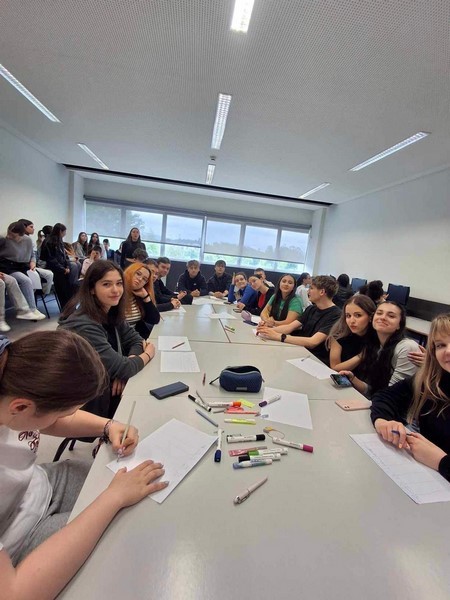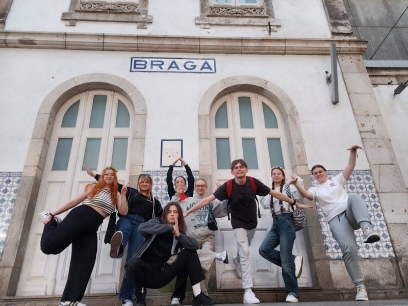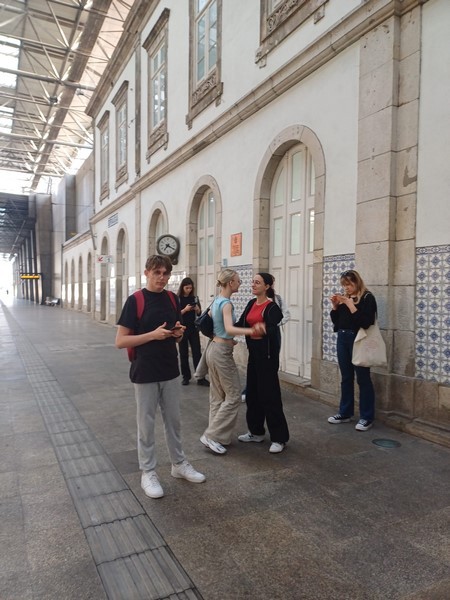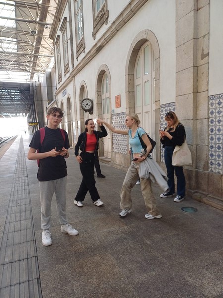 Wyruszyliśmy do Escola de Caldas das Taipas w przebojowych nastrojach, gotowi na główną atrakcję dzisiejszego dnia - MECZ SPORTOWY‼️ Ale zanim to... mała doza wiedzy. Zapoznaliśmy się z ciekawą prezentacją o najatrakcyjniejszych elementach Portugalii, łącznie z geografią, muzyką fado oraz oczywiście, piłką nożną! To, co jednak sprawia nam najwięcej frajdy, to nawiązywanie nowych znajomości z portugalskimi koleżankami i kolegami. Przełamujemy strach, dowiadujemy się różnych ciekawostek o zupełnie innej kulturze i świetnie się rozumiemy! Później wzięliśmy udział w sportowej rywalizacji. Siatkówka okazała się genialną zabawą! Cały dzień wypełniony był integracją oraz wspólnym zdobywaniem wiedzy.