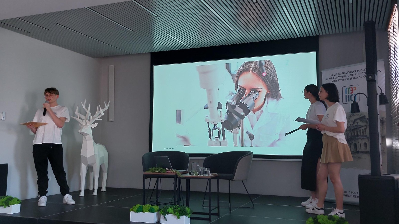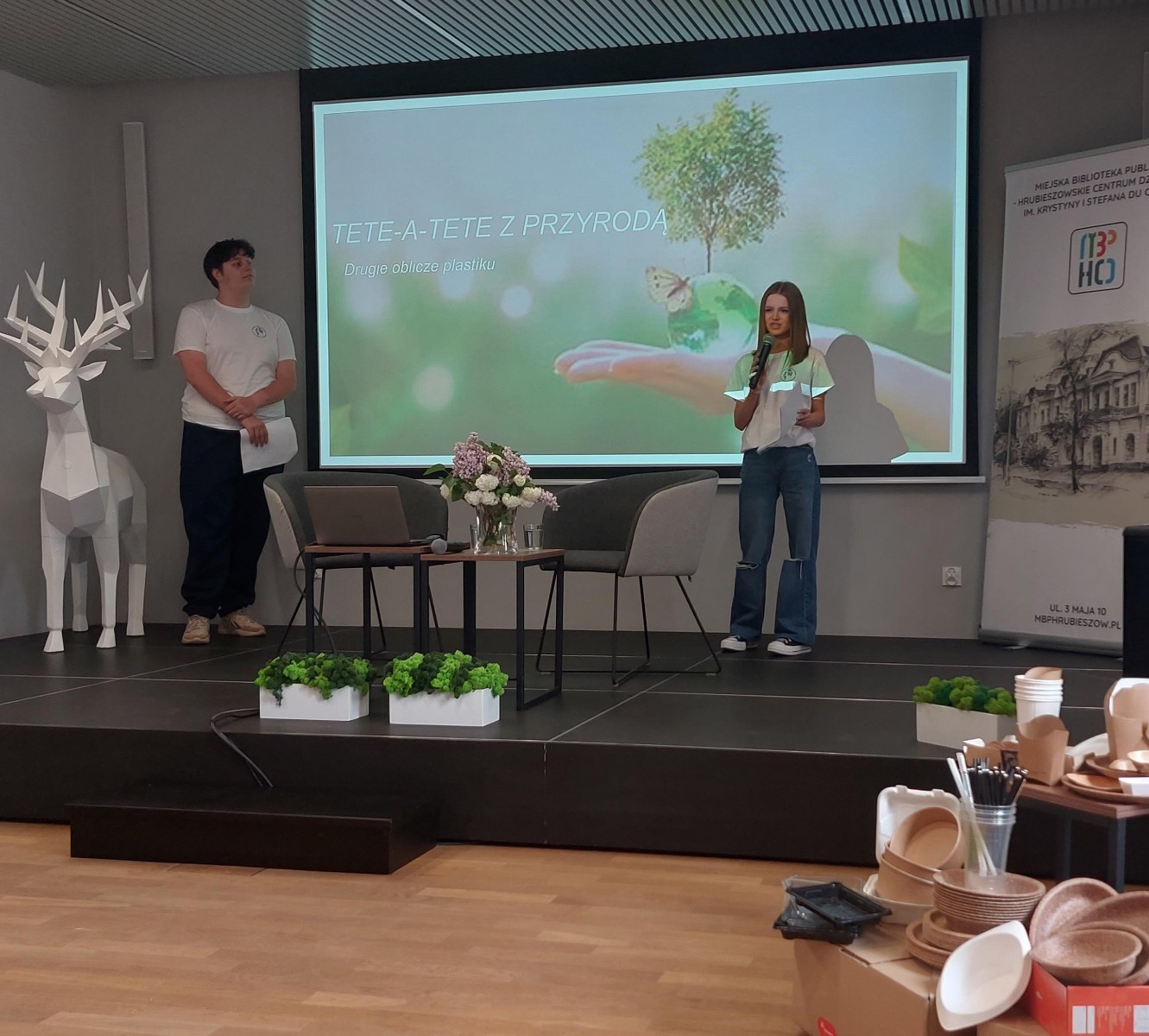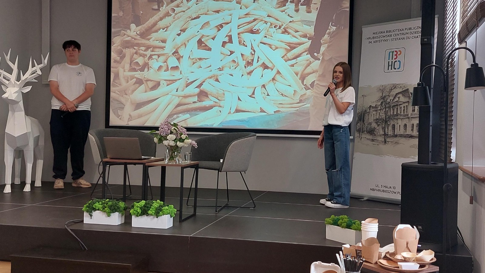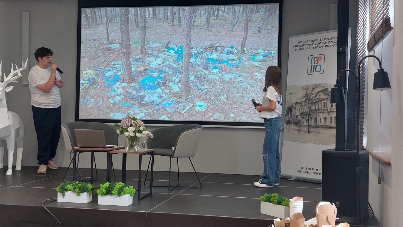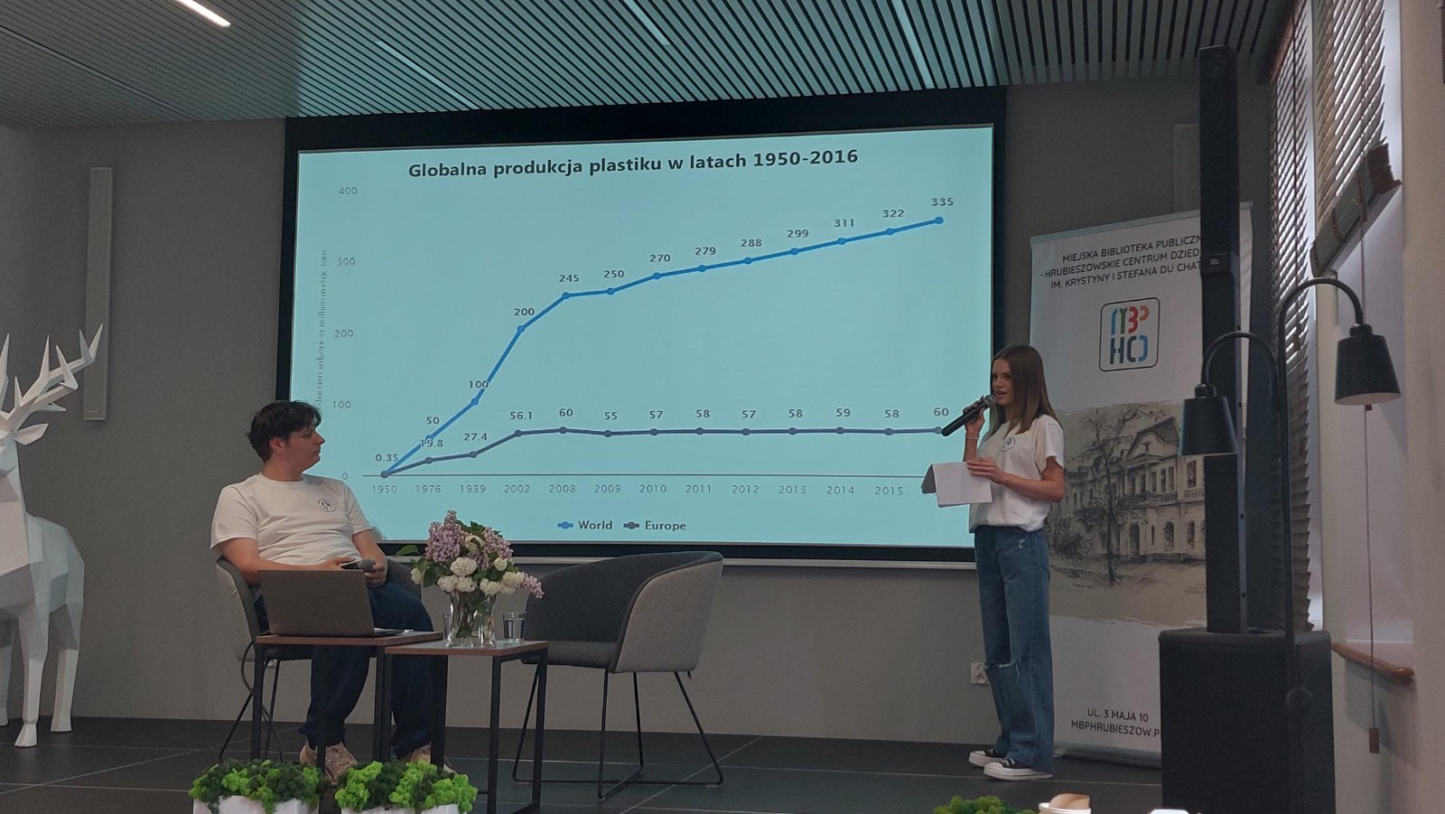 10 maja dwoje uczniów I LO im. ks. Stanisława Staszica Krystian Kucharski i Natalia Siemicka poprowadzili wykład pt.: ”Drugie oblicze plastiku".