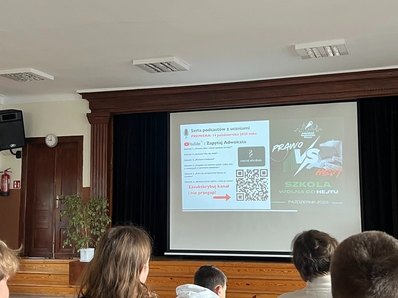 „Prawo vs. Hejt. Szkoła wolna od hejtu”. Program realizowany jest przez Naczelną Radę Adwokacką.