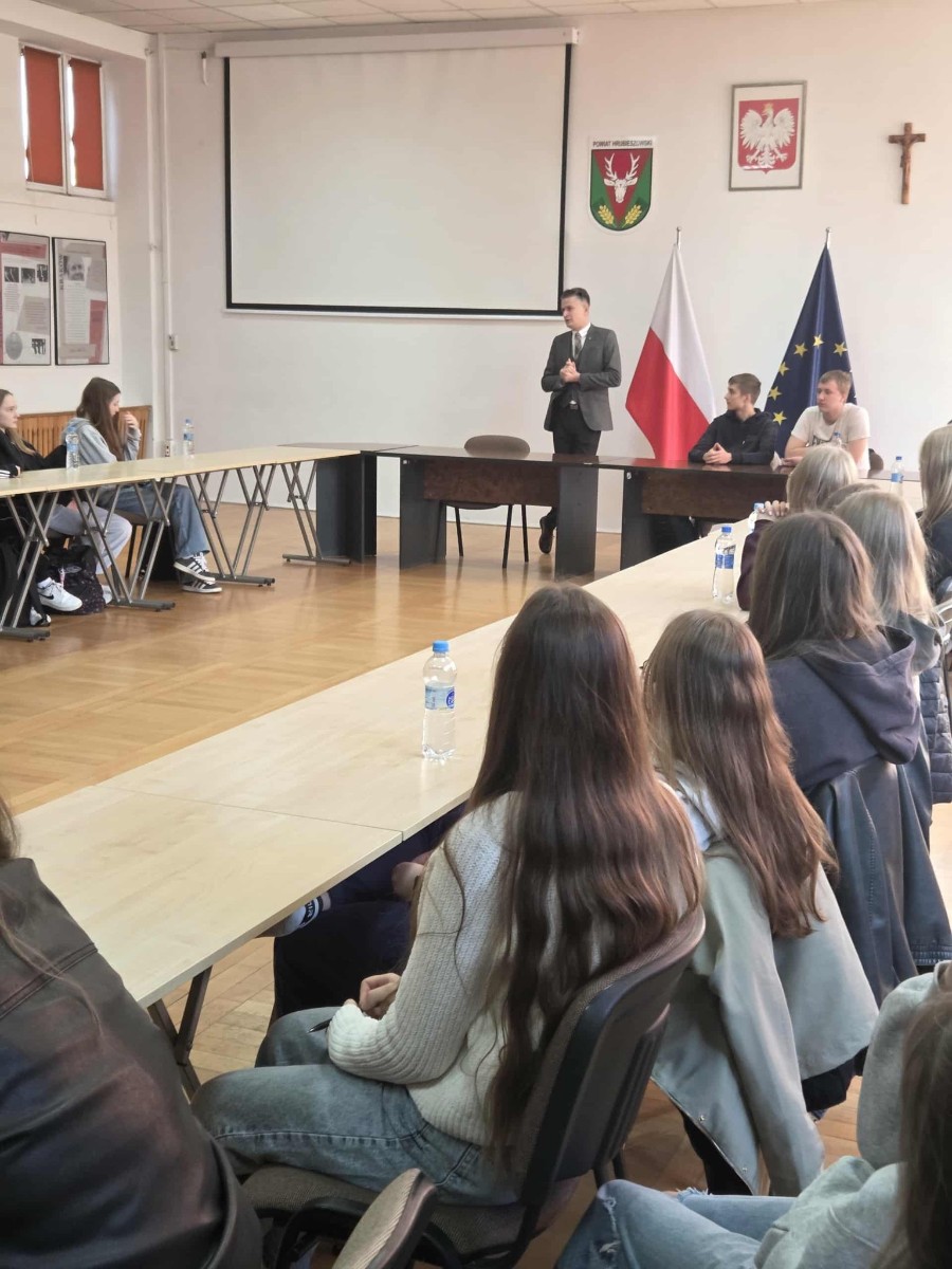 20 Października 2025 r. w ramach lekcji edukacji obywatelskiej w siedzibie starostwa powiatowego młodzież I Liceum Ogólnokształcącego im. ks. S. Staszica spotkała się z panem Markiem Poznańskim, etatowym członkiem zarządu powiatu hrubieszowskiego.