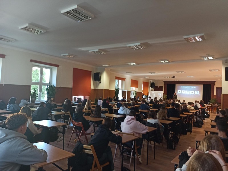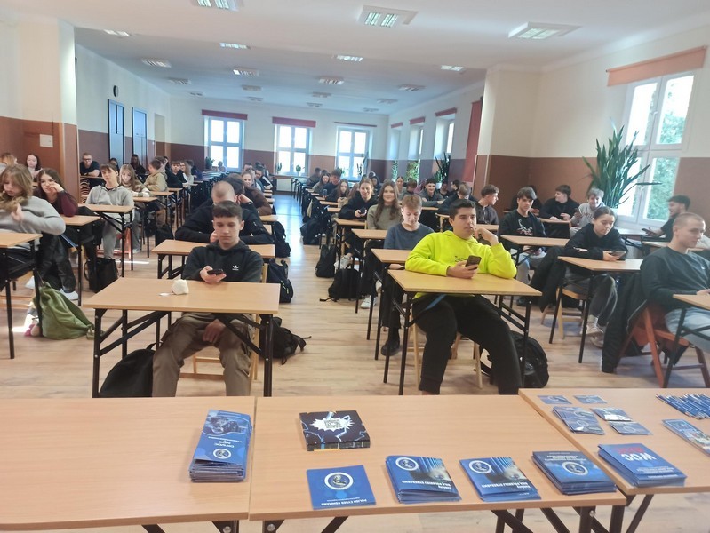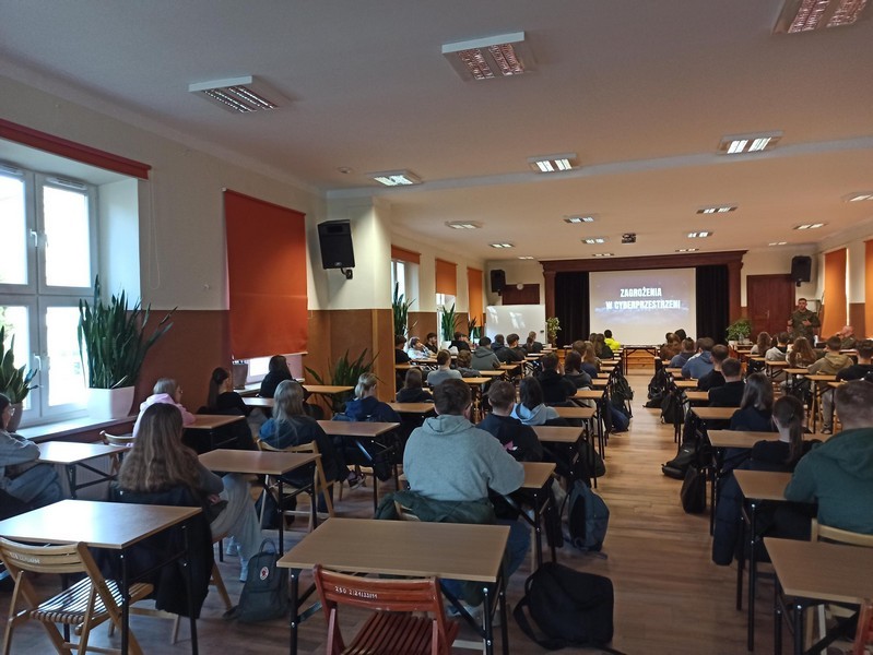 13. listopada 2025 roku w naszej szkole odbyło się wyjątkowe spotkanie edukacyjne zorganizowane przez zespół wychowawców i pedagoga szkolnego z dowódcą Jednostki Działań w Cyberprzestrzeni i podległymi jemu oficerami. Tematem przewodnim wydarzenia było cyberbezpieczeństwo, które zyskuje coraz większe znaczenie w dynamicznie rozwijającym się świecie technologii.