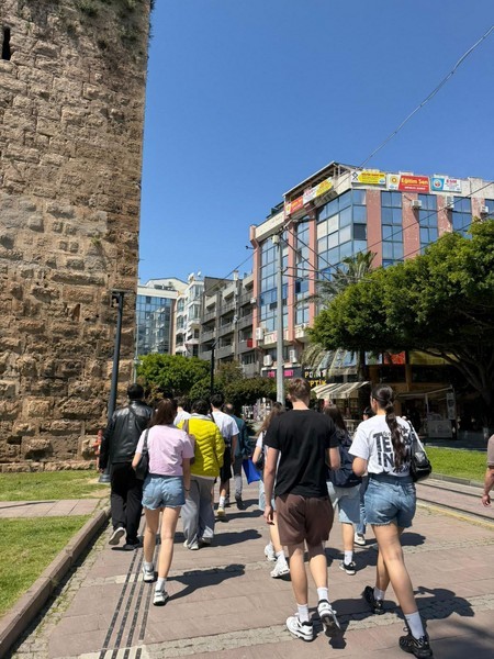 Zobaczyliśmy starożytną wieżę zegarową oraz Bramę Hadriana, która zrobiła na nas duże wrażenie – trudno uwierzyć, że powstała aż w 130 roku n.e. na cześć cesarza Hadriana. W międzyczasie szliśmy wzdłuż portu, z którego ukazywał się niesamowity widok na morze i góry – wszystko wyglądało jak z pocztówki. Następnie udaliśmy się na zakupy na targi. Podczas kupowania pamiątek, mieliśmy możliwość poznania wielu ludzi oraz ich kultury.
