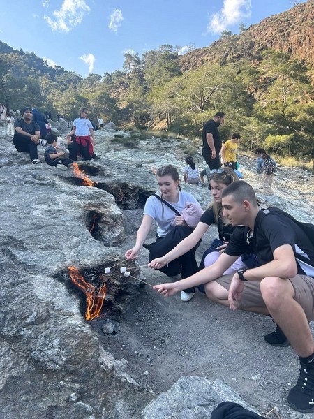 Następnie wybraliśmy się na górę Chimera, gdzie zobaczyliśmy niezwykłe, naturalne płomienie wydobywające się ze skał, co zrobiło na nas ogromne wrażenie. Cała wyprawa była nie tylko okazją do podziwiania przyrody, ale też poznania ciekawostek o tym wyjątkowym miejscu. Ten dzień dostarczył nam wielu niezapomnianych wrażeń i pięknych widoków.