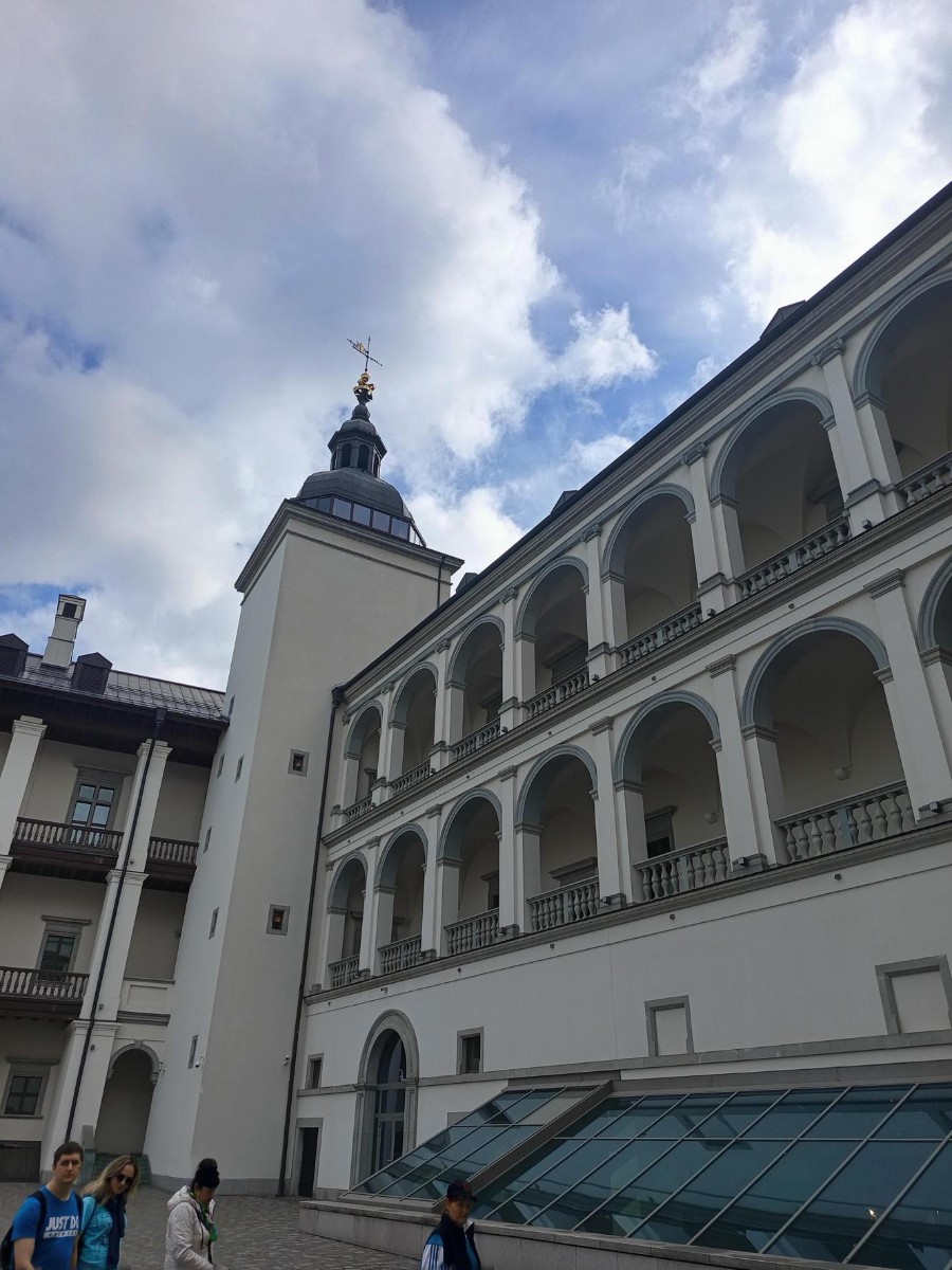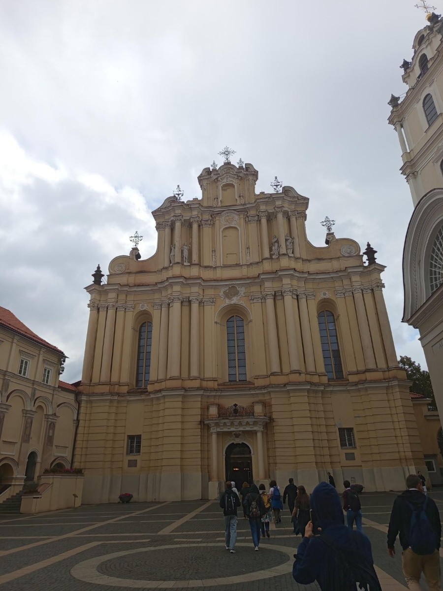 Kolejny dzień rozpoczęłyśmy wizytą w Domu Kultury Polskiej w Wilnie, gdzie odbyło się uroczyste wręczenie dyplomów i nagród dla laureatów oraz ich opiekunów. Po krótkiej przerwie wszyscy rozpoczęliśmy intensywne zwiedzanie Wilna – stolicy Litwy. Odwiedziliśmy m.in. kościół św. Piotra i Pawła, weszliśmy na Górę Zamkową z widokiem na miasto oraz zwiedziliśmy teren Uniwersytetu Wileńskiego.