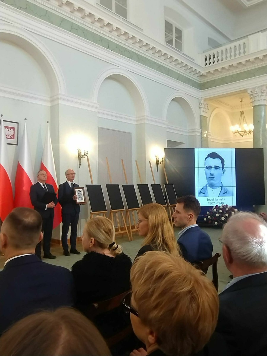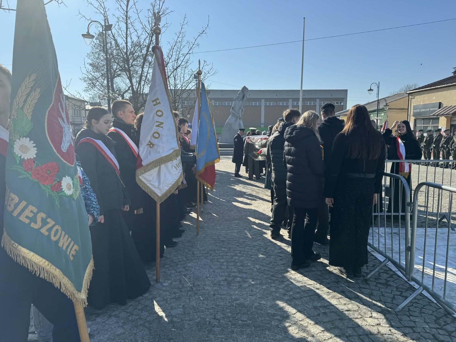 W hrubieszowskich obchodach I LO im. ks. Stanisława Staszica reprezentował poczet sztandarowy w składzie: Karolina Jasińska (III B), Oliwia Mączka (III A), Piotr Koroński (III A), pod opieką p. Joanny Pudłowskiej. Szkoła o ponad 100-letniej historii dba o przekazywanie uczniom wartości patriotycznych nie tylko w kontekście ogólnonarodowym, ale także tym lokalnym, dotyczącym miejsc, w których młodzież wzrasta i dojrzewa na co dzień. Członkini pocztu, Karolina Jasińska jest prawnuczką jednej z ofiar totalitaryzmu, Józefa Jasińskiego. 26 lutego 2026 r. wraz z rodziną wzięła udział w uroczystości w Pałacu Prezydenckim, w czasie której członkowie rodzin ofiar totalitaryzmów odebrali z rąk Prezydenta RP Karola Nawrockiego dokumenty potwierdzające tożsamość ich bliskich. Zapewne w wielu rodzinach naszych uczniów kultywuje się pamięć o cichych bohaterach trudnej polskiej historii. Nasze babcie, prababcie, dziadkowie i pradziadkowie to niejednokrotnie ludzie ogromnej odwagi, o czym musimy stale pamiętać, również dzięki takim świętom jak dzisiejsze.