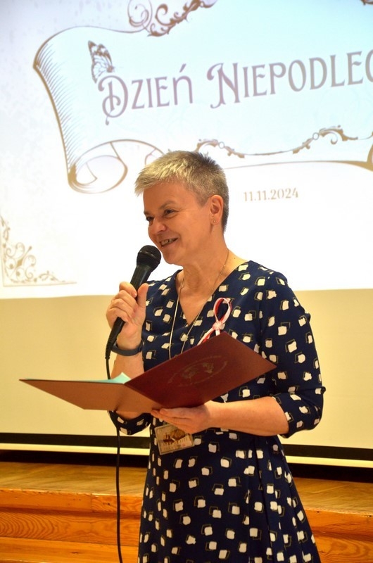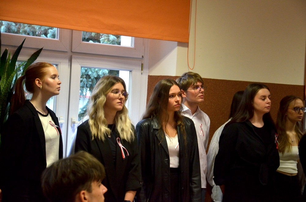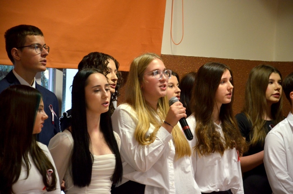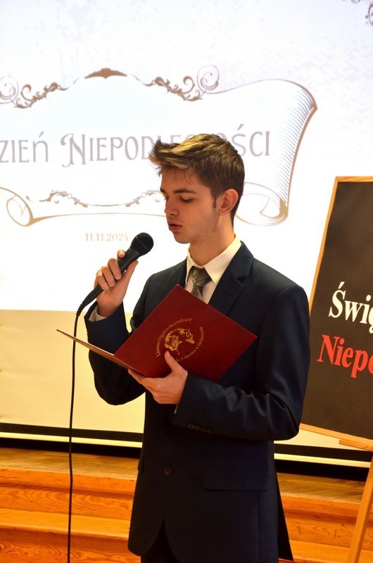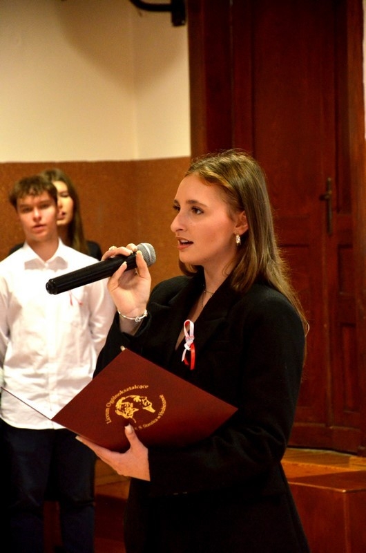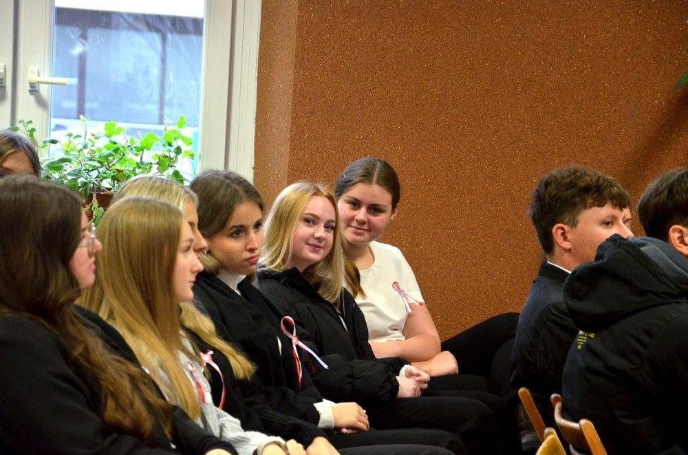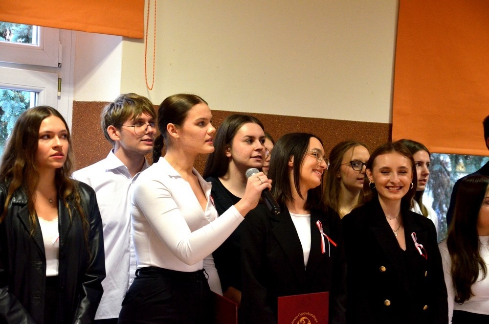 Uczennice i uczniowie pod opieką pań: Elżbiety Dąbrowskiej i Agnieszki Jamroż przygotowali muzyczną podróż w czasie, przedstawiając dzieje naszego narodu pod zaborami na podstawie pieśni, które towarzyszyły Polakom w walce o niepodległość. Zgromadzona w auli szkolnej publiczność skorzystała z zaproszenia do wspólnego śpiewania pieśni patriotycznych.