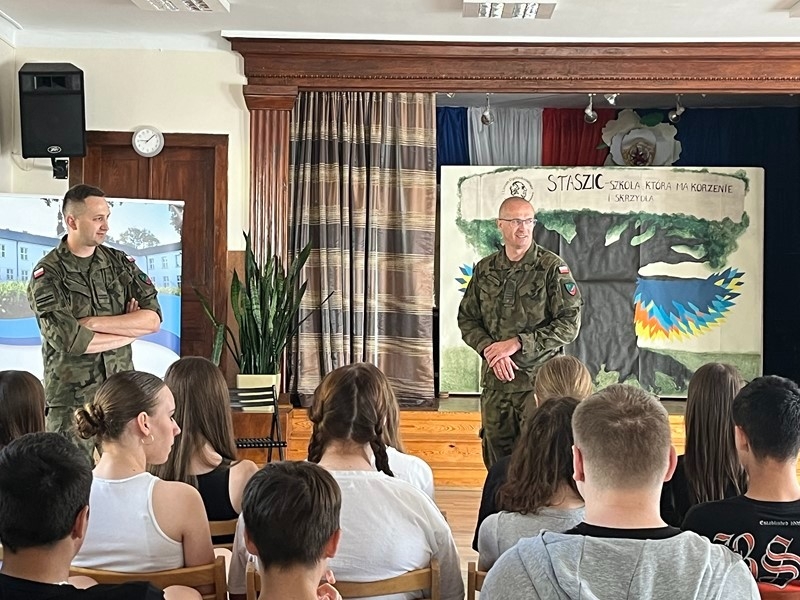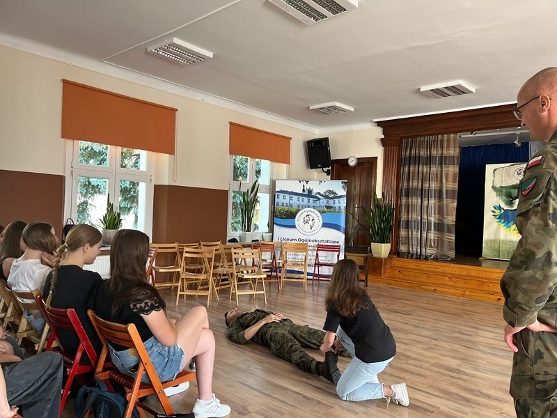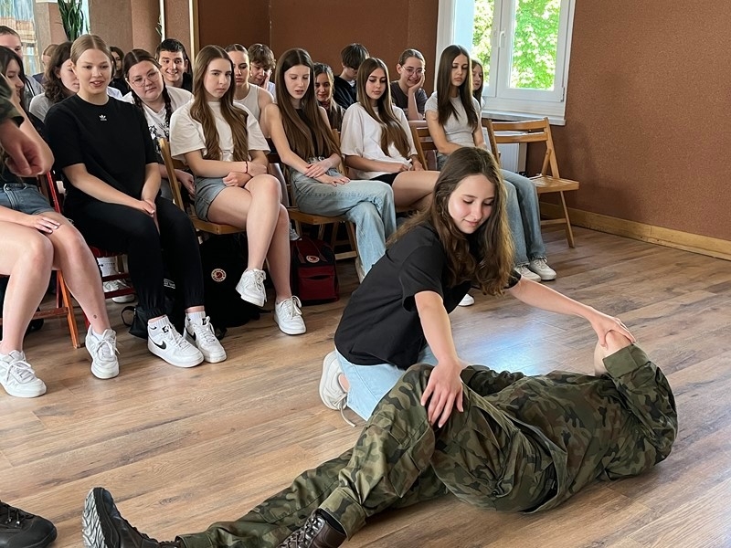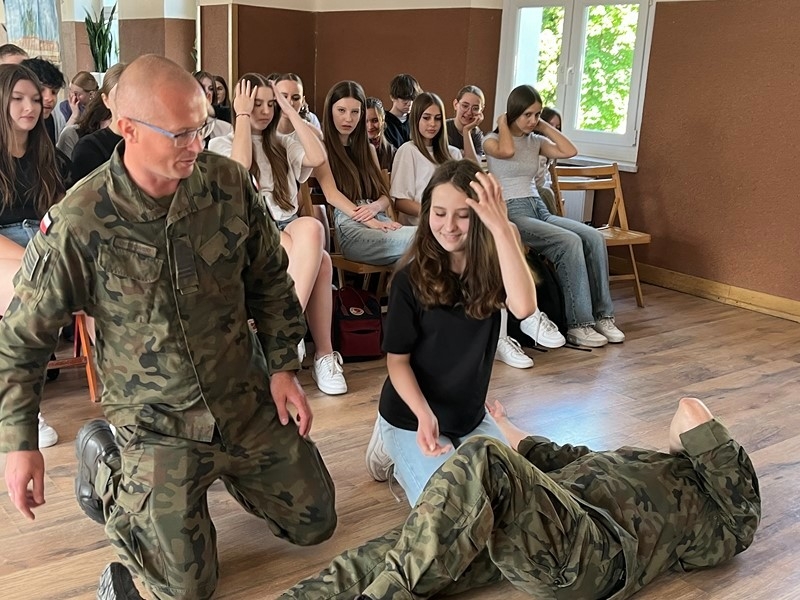 W dniu 28.05.2024 r. uczniowie klasy 1b wzięli udział w 3 godzinnym szkoleniu, prowadzonym przez Żołnierzy II Pułku Rozpoznawczego w Hrubieszowie w ramach pilotażowego ogólnopolskiego programu "Edukacja z wojskiem", który jest wspólnym przedsięwzięciem Ministerstwa Edukacji Narodowej i Ministerstwa Obrony Narodowej.