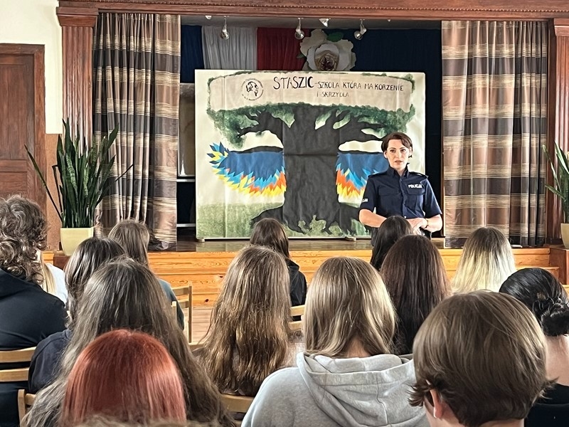 Tematem spotkań było przede wszystkim szeroko pojęte bezpieczeństwo, w tym zagrożenia internetowe, niebezpieczne treści i kontakty, konsekwencje prawne niewłaściwych zachowań, procedury reagowania wobec sprawcy przemocy, odpowiedzialność karna nieletnich.