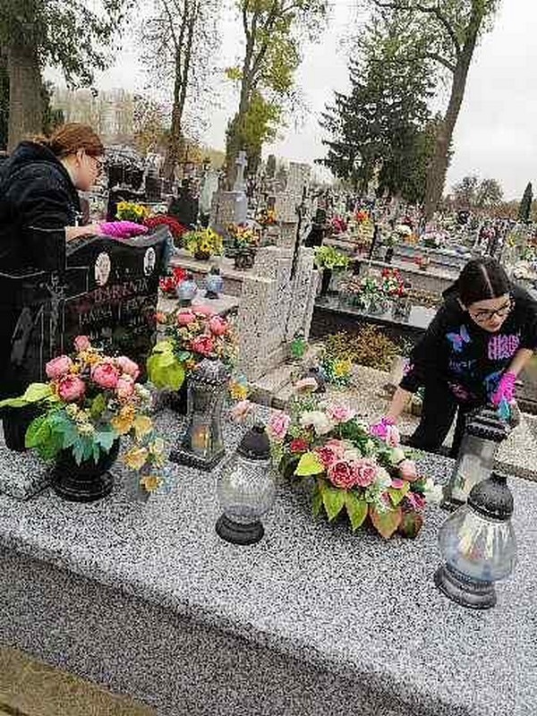 Uczniowie wraz z opiekunem Szkolnego Koła Wolontariatu, p. Anną Pękowską i siostrą Bernardą Kozieł uprzątnęli 24 groby nauczycieli, którzy tworzyli ponad 100-letnią historię szkoły. Młodzież poznała nazwiska i sylwetki pedagogów pochowanych na miejskim cmentarzu. Zapalone znicze upamiętniły wkład nieżyjących nauczycieli w edukację kolejnych pokoleń hrubieszowian.