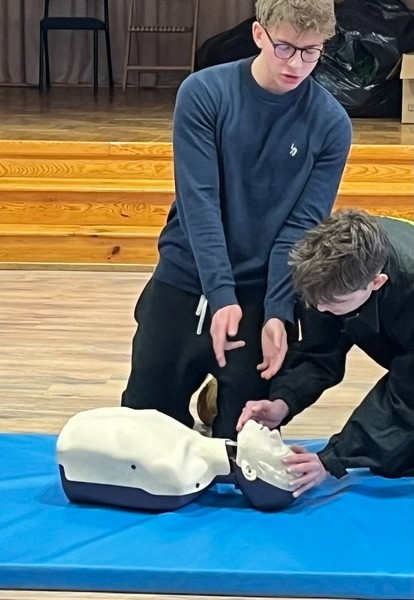 Podczas spotkania uczniowie mogli przypomnieć sobie zasady udzielania pierwszej pomocy, w tym resuscytację krążeniowo-oddechową oraz obsługę AED. Dzięki szkolnemu sprzętowi treningowemu mieli możliwość praktycznego przećwiczenia tych umiejętności Uczniowie doskonale wiedzieli również, jak prawidłowo ułożyć poszkodowanego w pozycji bocznej ustalonej. Strażacy zwrócili również uwagę na niebezpieczeństwo spadających sopli lodu z dachów oraz przypomnieli o zachowaniu ostrożności na przejściach dla pieszych.