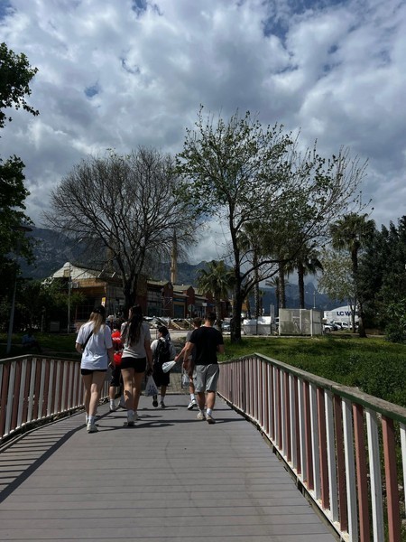 Trzeci dzień wyjazdu spędziliśmy w jednym z największych miast Turcji – Antalyi. Już od samego początku było czuć zupełnie inny klimat – więcej ludzi, hałas i atmosfera jak na wakacjach. Przewodnicy pokazali nam najważniejsze miejsca. Zobaczyliśmy starożytną wieżę zegarową oraz Bramę Hadriana, która zrobiła na nas duże wrażenie – trudno uwierzyć, że powstała aż w 130 roku n.e. na cześć cesarza Hadriana. W międzyczasie szliśmy wzdłuż portu, z którego ukazywał się niesamowity widok na morze i góry – wszystko wyglądało jak z pocztówki. Następnie udaliśmy się na zakupy na targi. Podczas kupowania pamiątek, mieliśmy możliwość poznania wielu ludzi oraz ich kultury.